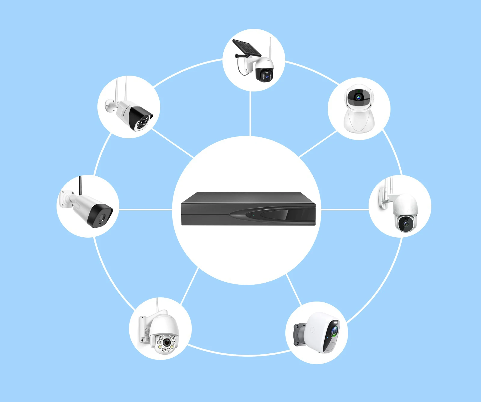 Этот NVR поддерживает onvif-совместимые ip-камеры, вы можете купить unitoptek 5mp/8mp ip-камеры