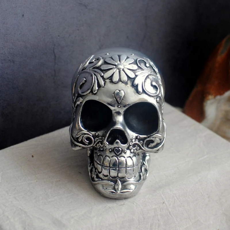 Silver Plating Pattern Skull Decor Statues Modern Resin Sculpture Home Decoration Ornaments Decoration Accessories Halloween Gif