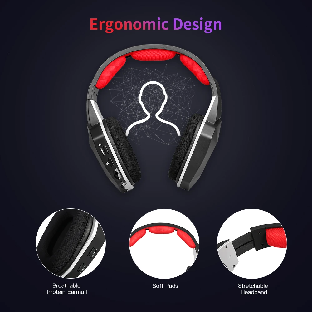 Эта беспроводная гарнитура HW-N9U с частотой 2,4 ГГц станет отличной гарнитурой, которая позаботится о вашей игровой мечте. С 7,1 канальным виртуальным объемным звуком Реалистичная фоновая музыка предлагает вам более захватывающий опыт. Эргономичный дизайн обеспечивает комфортное ощущение. Замена для PS4/ПК/Mac.