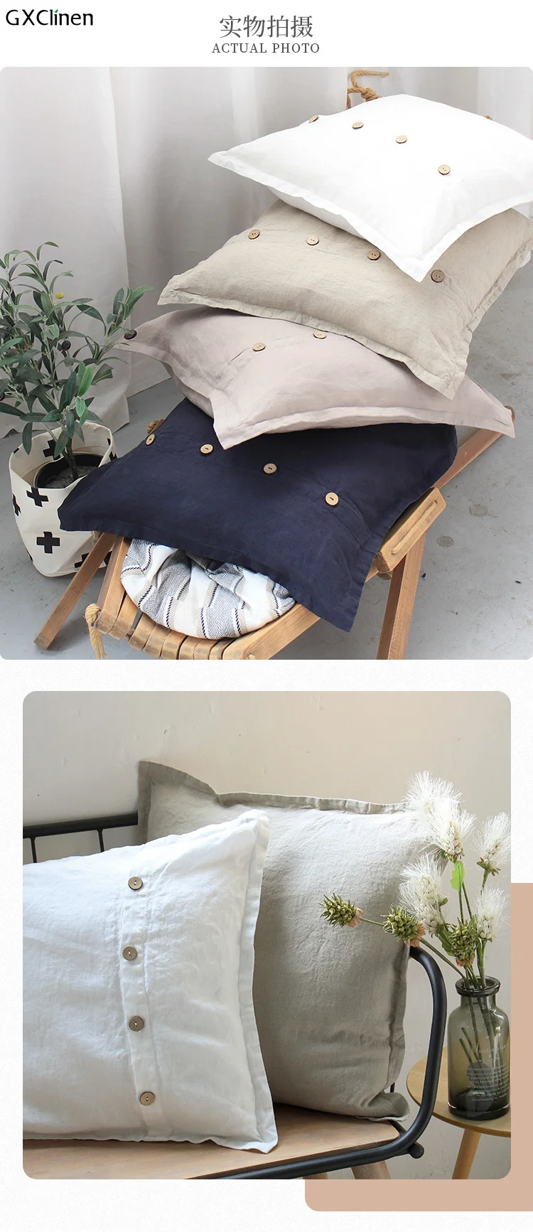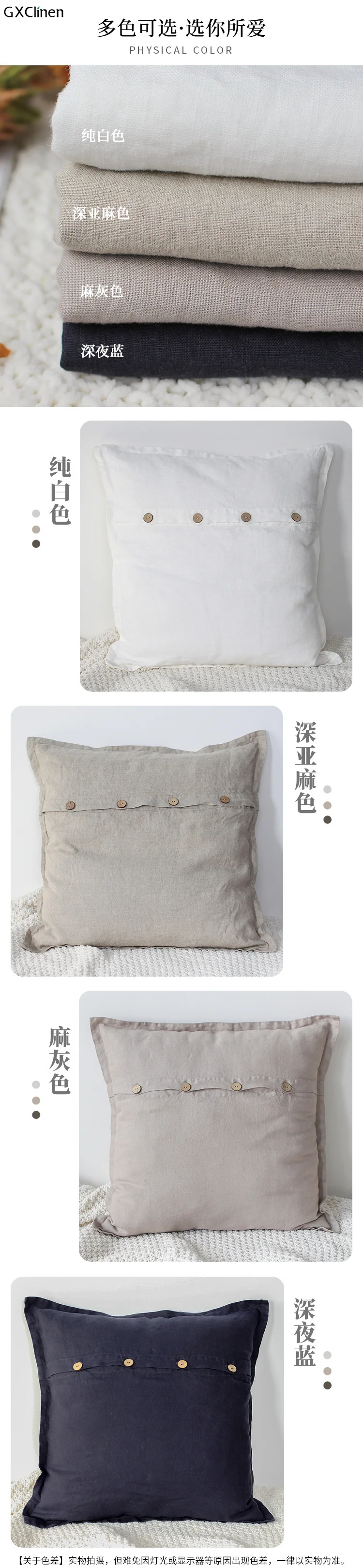100% Linen natural coconut shell buckle decorative pillowcase pillow cover cushion throw pillow
