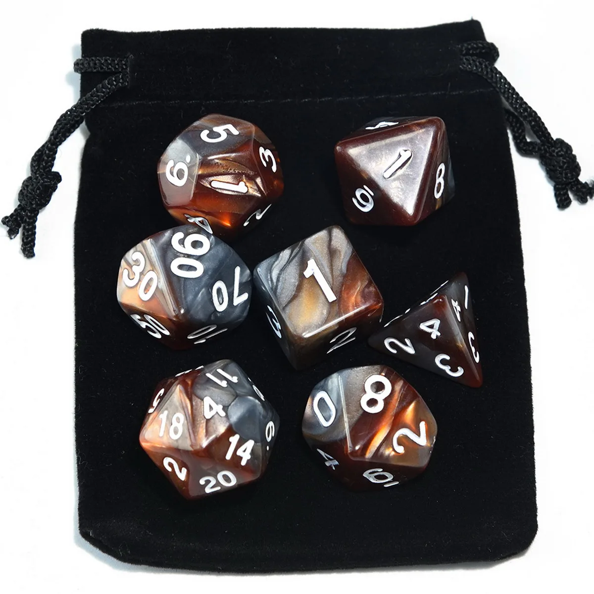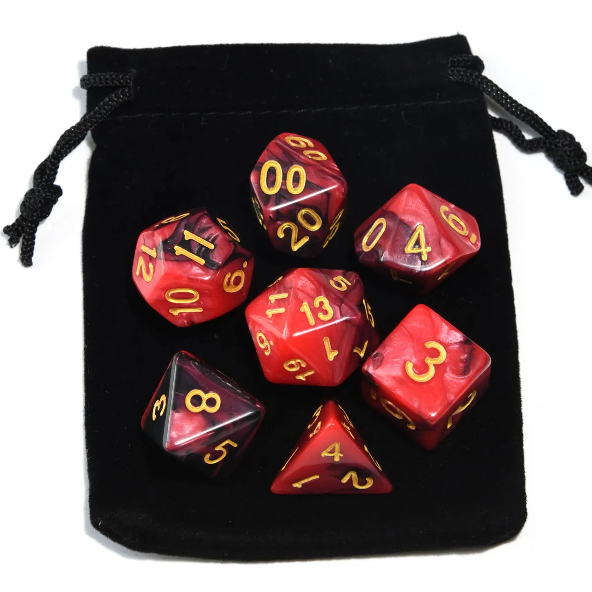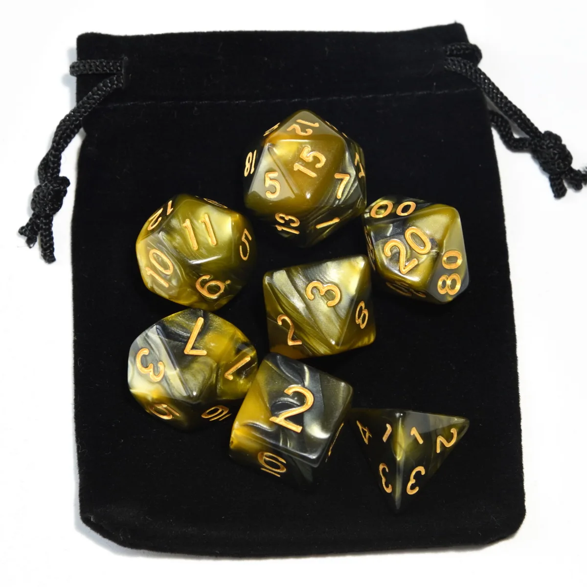 Прозрачный набор игральных костей два цвета для DnD RPG MTG чёрный мешок с кулиской D4 D6 D8 D10 D % D12 D20