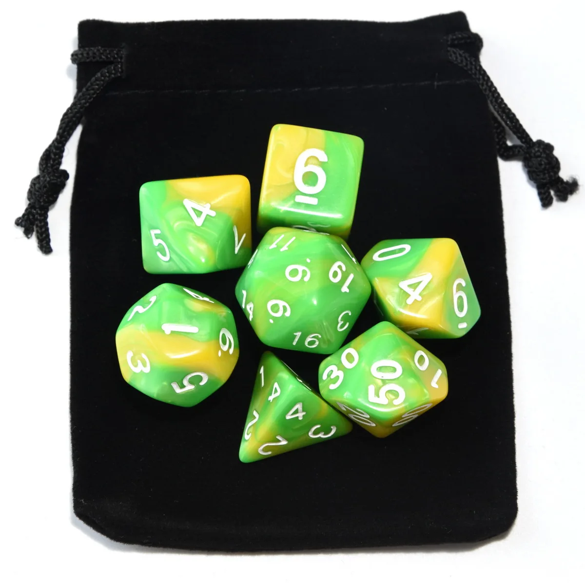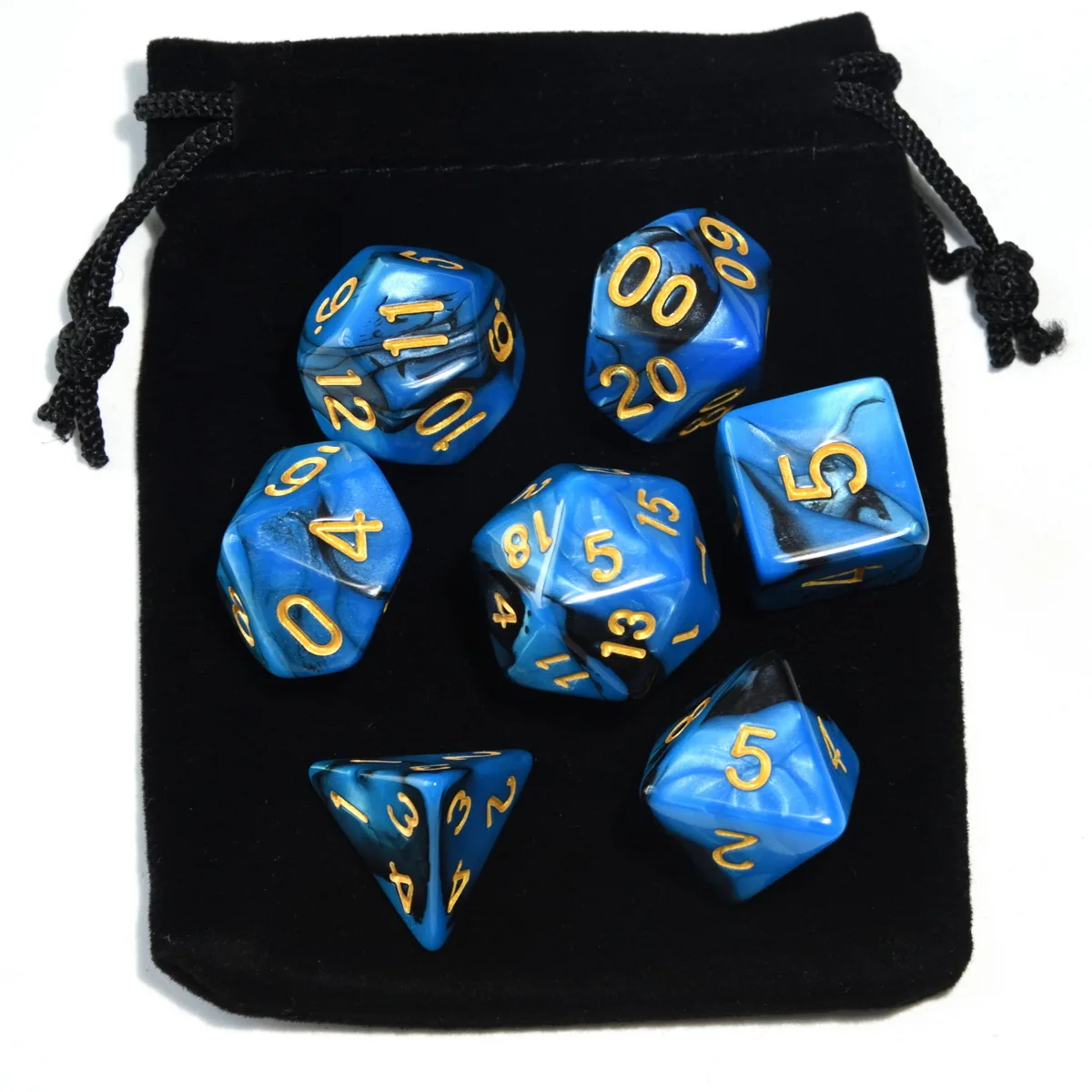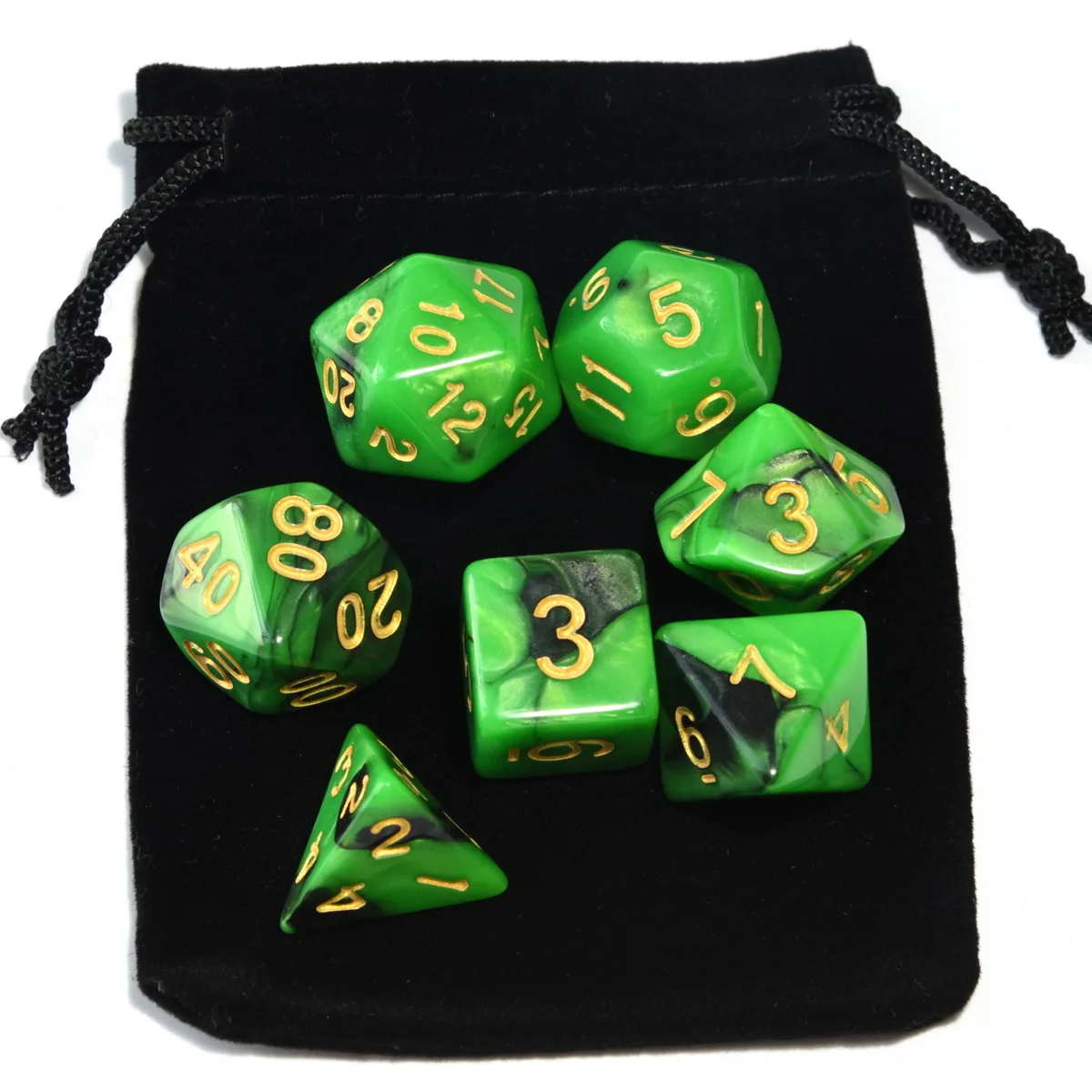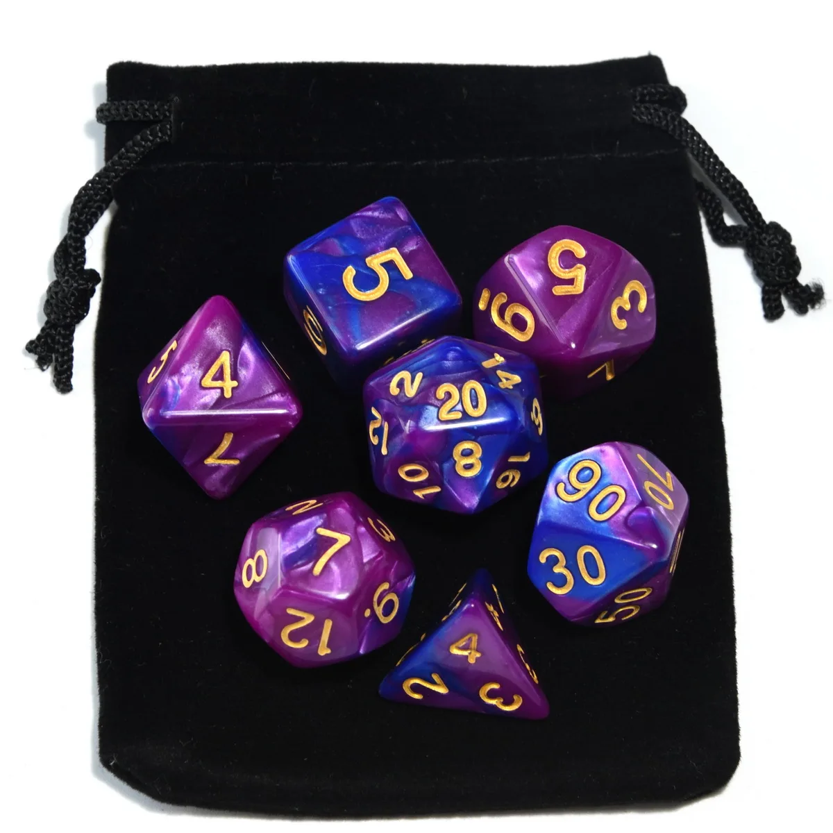 Прозрачный набор игральных костей два цвета для DnD RPG MTG чёрный мешок с кулиской D4 D6 D8 D10 D % D12 D20