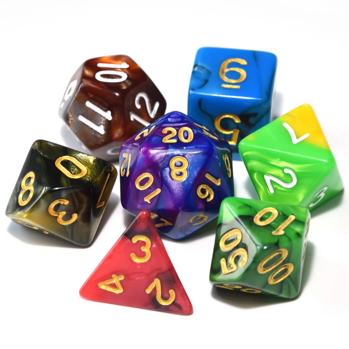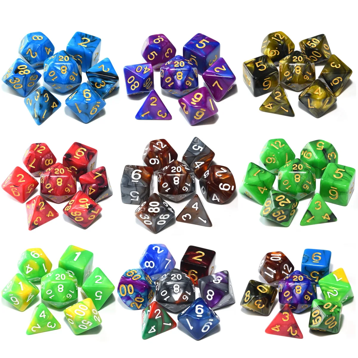Эти многогранные Акриловые Игральные Кости имеют четкие фигуры с каждой стороны. Четкие цифры как можно больше на каждом лице для удобного чтения. И цифры, выгравированные выше, не выцветают легко.