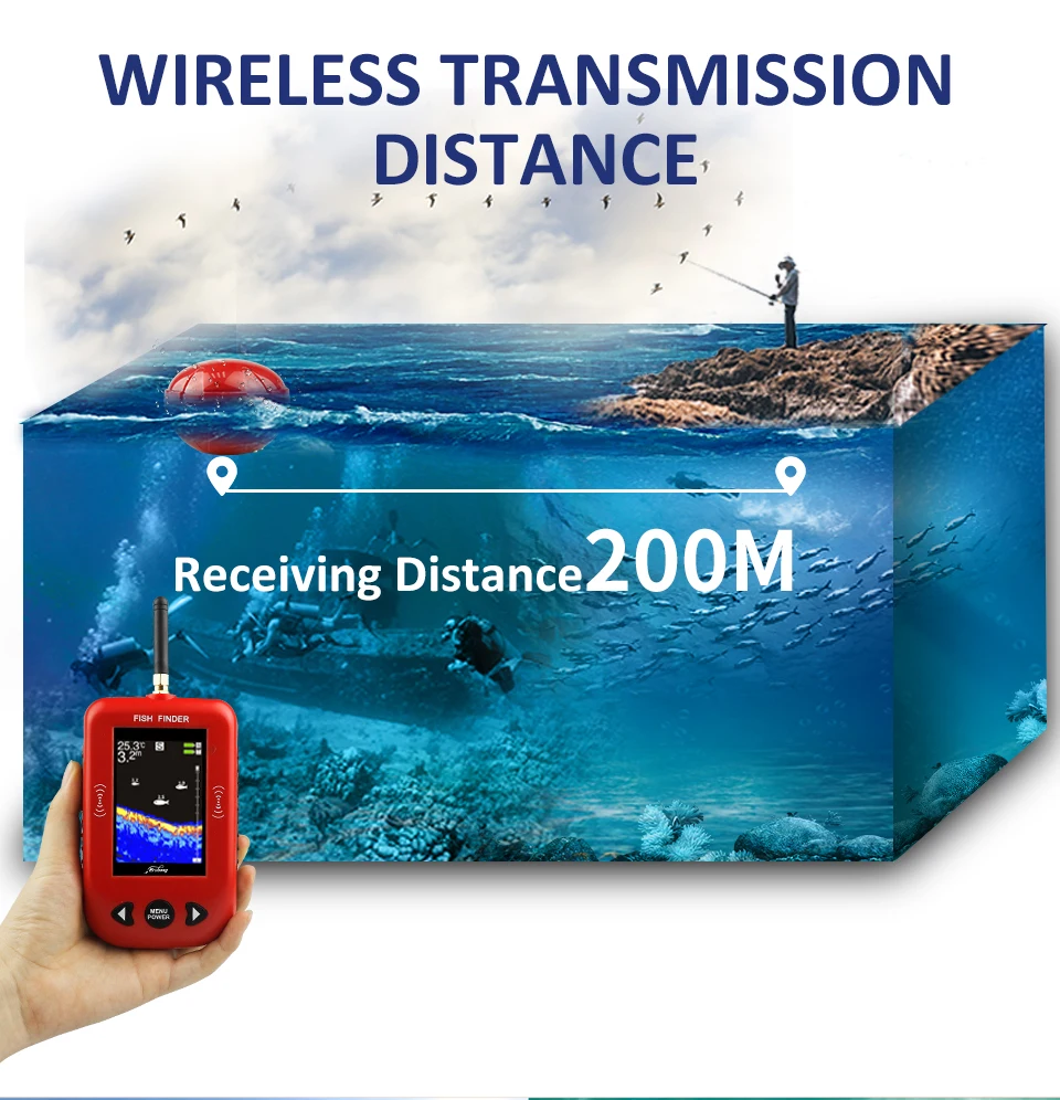 Erchang F3C портативный рыболокатор, беспроводной гидролокатор, 200 м, Дальняя сигнализация, рыболовный эхолот, Морская рыбалка на озере