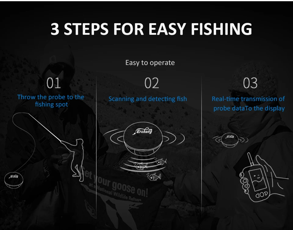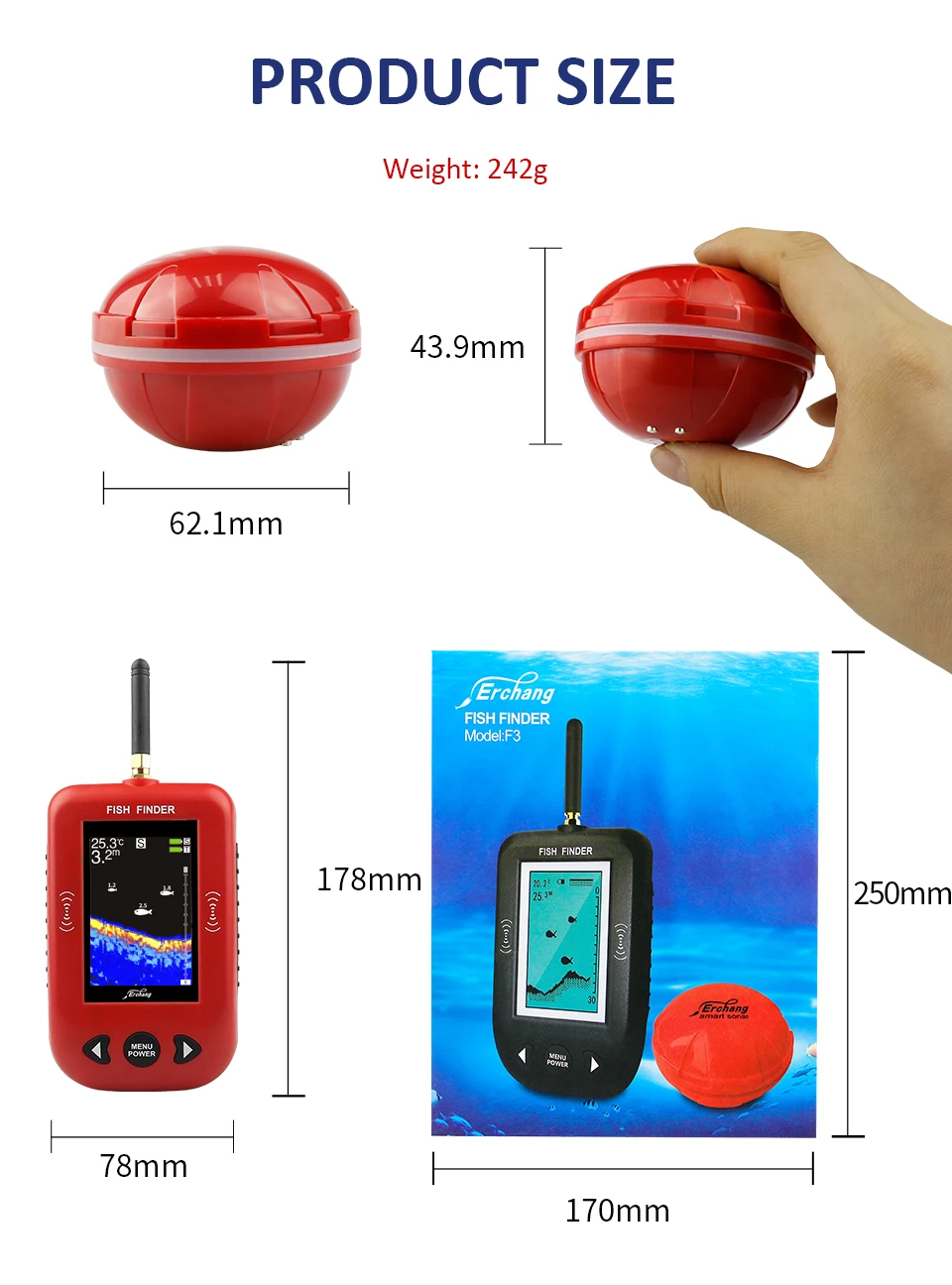 Беспроводной эхолот Erchang F3C для рыбалки, гидролокатор для рыбалки на глубине до 100 м, для озерной и морской рыбалки