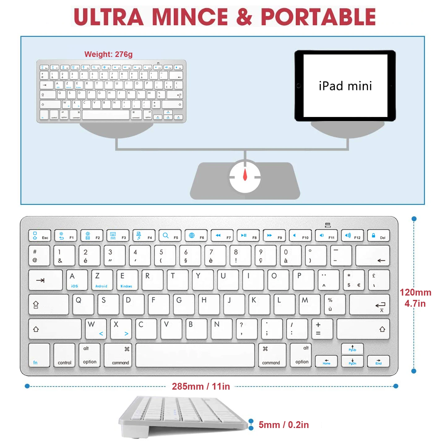 Bluetooth-клавиатура работает с iOS, Android, Mac os (некоторые мультимедийные функциональные кнопки не совместимы) и Windows, с помощью клавиш быстрого доступа для всех четырех систем. Для Apple iPad Air, iPad 4 / 3 / 2, iPad Mini 4, iPhone 7Plus/7/6S/6 Plus, Galaxy Tab ,Galaxy Note, поверхность и многое другое (несовместимо с таблетками Nook)