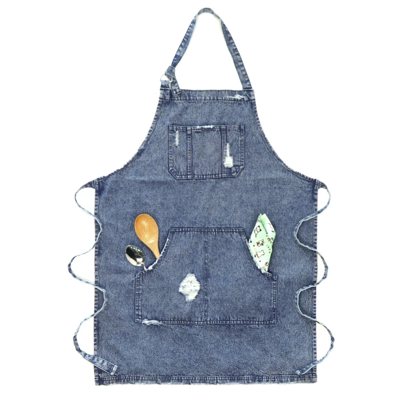 Кухонный Фартук для мужчин и женщин, рабочий джинсовый фартук для повара, ресторана, фартуки для приготовления пищи для официанта, кафе, магазина, крутой и модный Пользовательский логотип