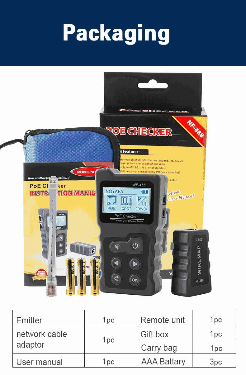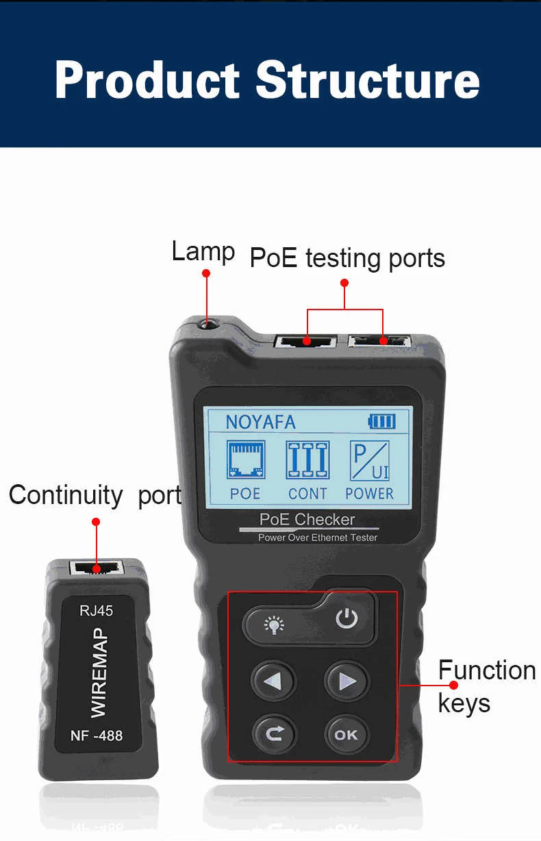 Newest NOYAFA NF-488 rj45 lan tester cat5 cat6 Cable network tracker ethernet/wiring tester PoE checker LCD Display Network Tool