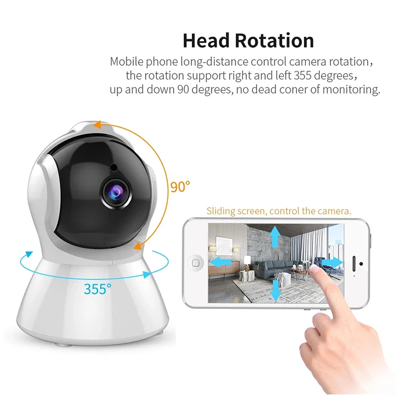 Просто проведите пальцем по экрану, чтобы камера вращалась вверх/вниз/влево/вправо (Горизонтальный350°,Vertical110°), Мониторинг в любом месте