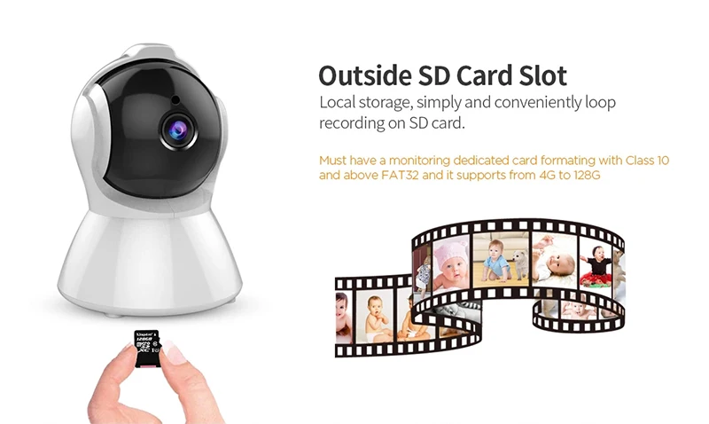 При обнаружении аномальных действий камера безопасности будет гудеть и отправлять оповещения о движении в реальном времени в приложение телефона, электронную почту и запись на sd-карте.
