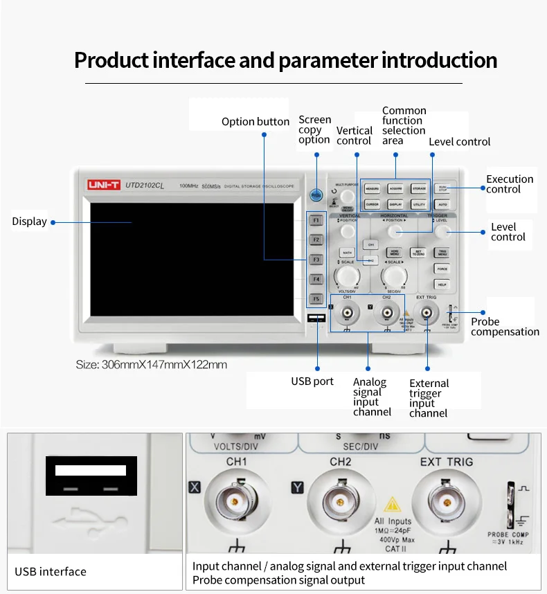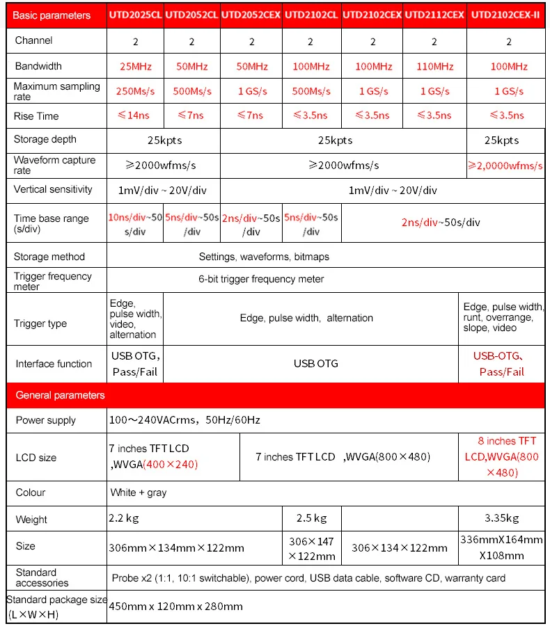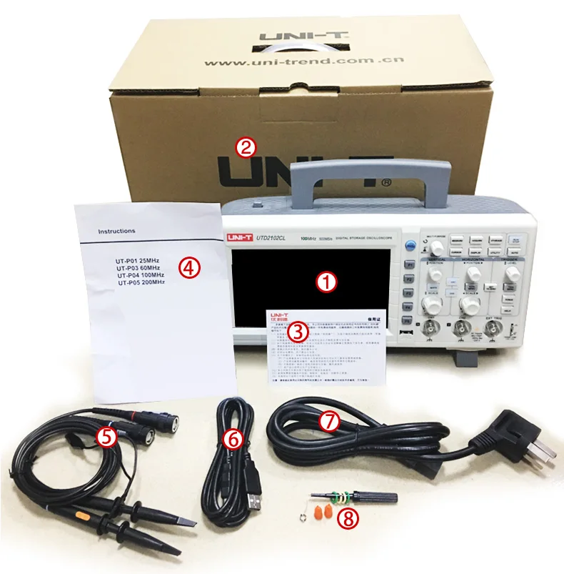 Probe× 2 (1 ×,10 × Переключаемый), шнур питания, usb-кабель, CD-диск программного обеспечения ПК