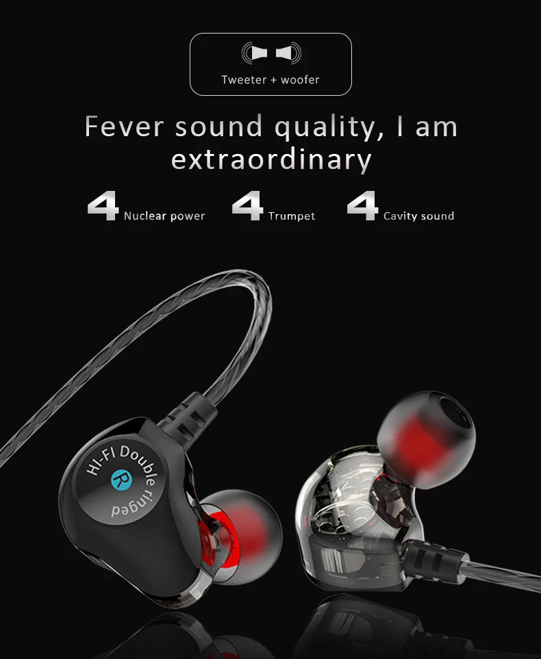 2. Двойные драйверы с подвижным блоком 8 мм делают глубокий и полный бас.