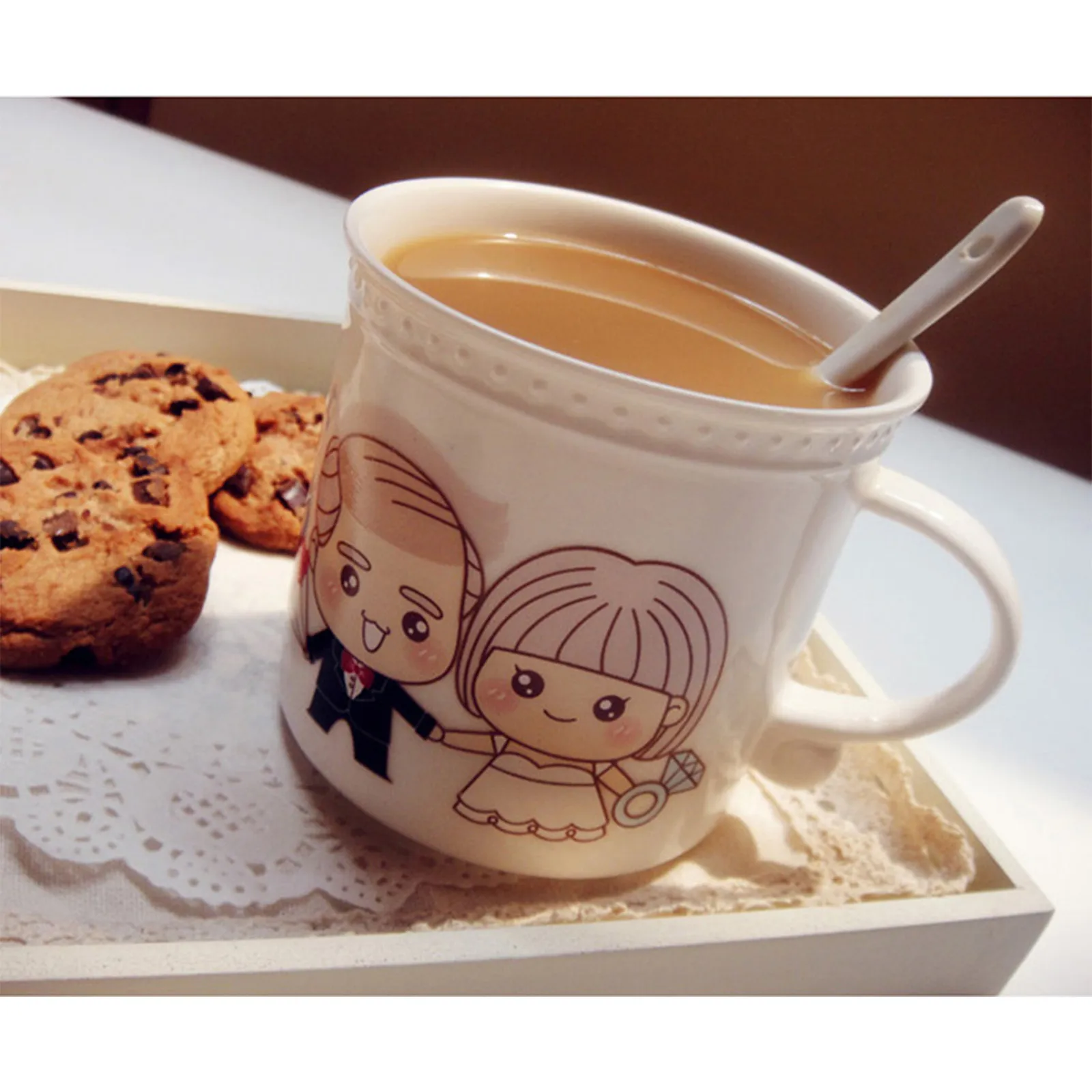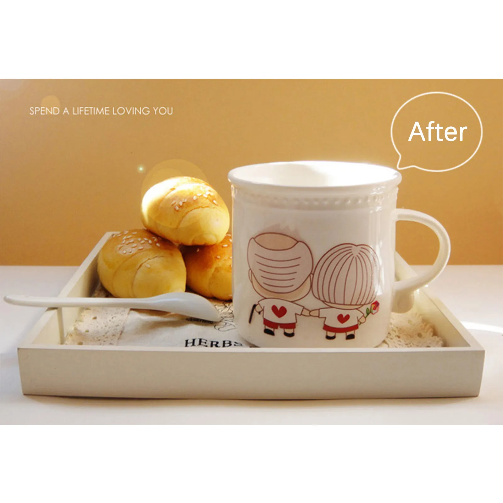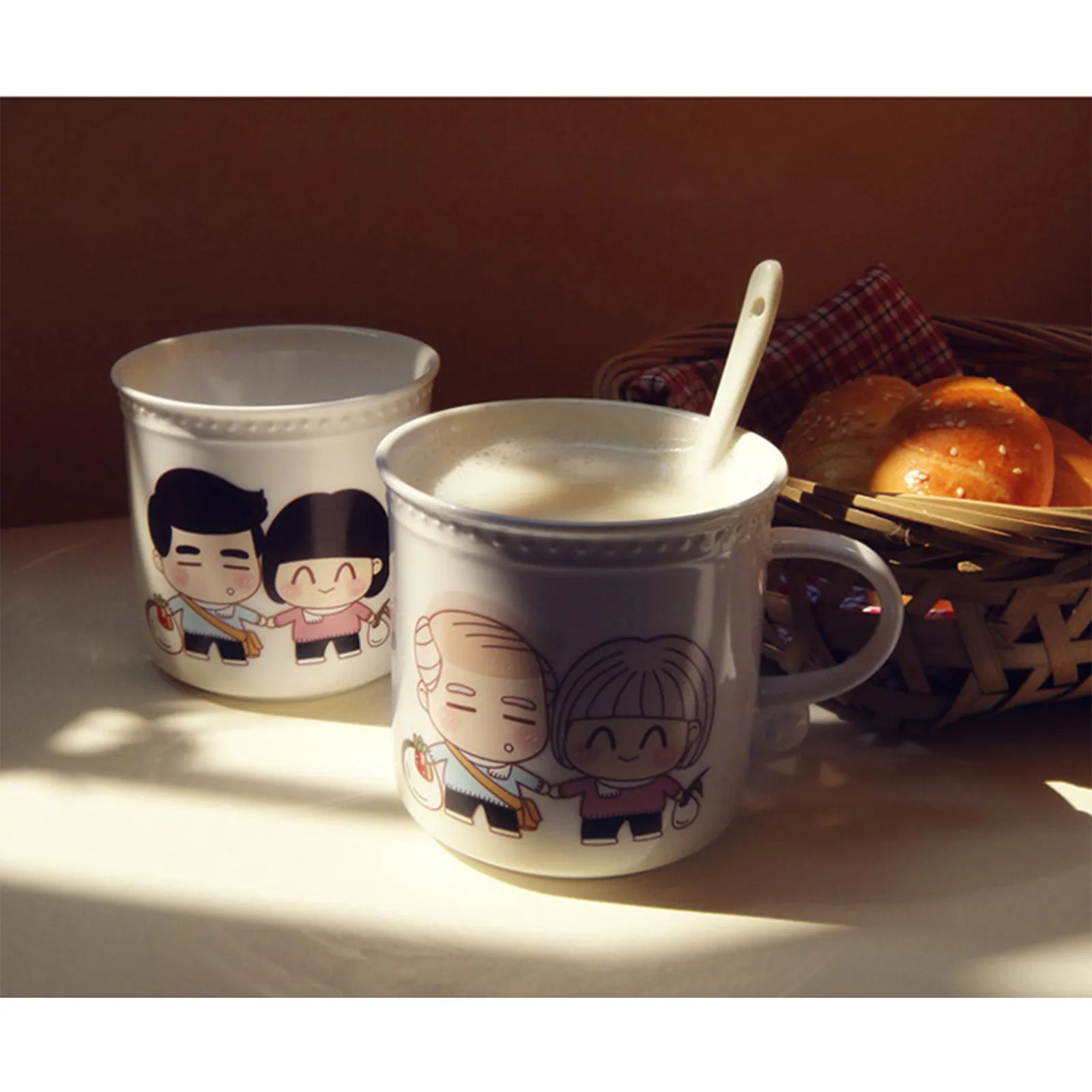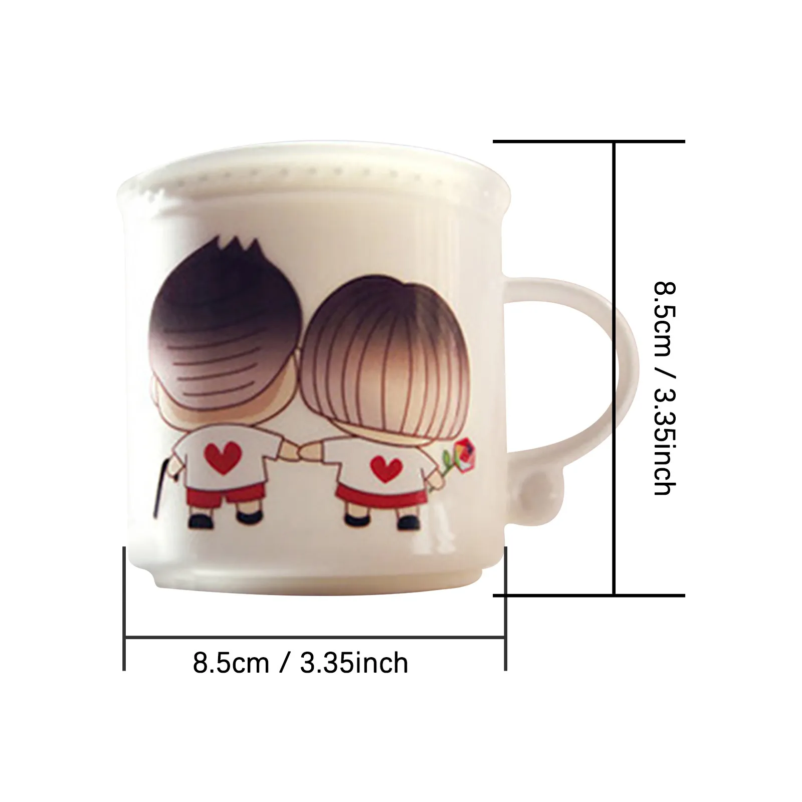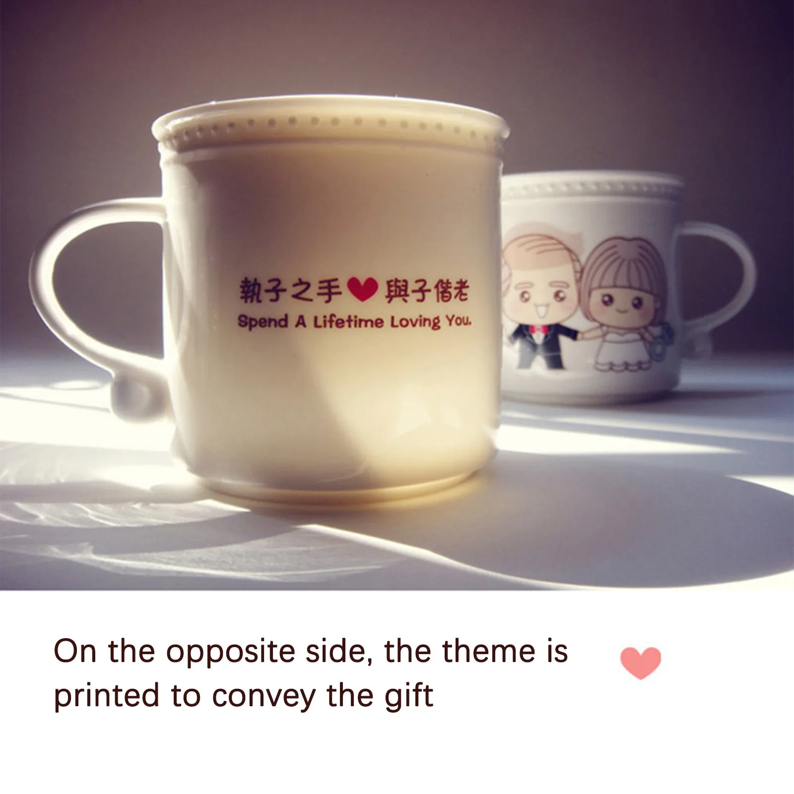 Это набор чашек с температурой и любовью. Медленно добавьте в чашку горячую воду, горячее молоко и горячий кофе. Пара влюбленных на чашке постепенно переходит от черных волос к белым, и в процессе инъекции горячей воды. Как будто любовь нагревается, как будто говорит нам состариться вместе.Время меняется, пространство меняется, все меняется, единственное постоянное, что я скучаю по вам...