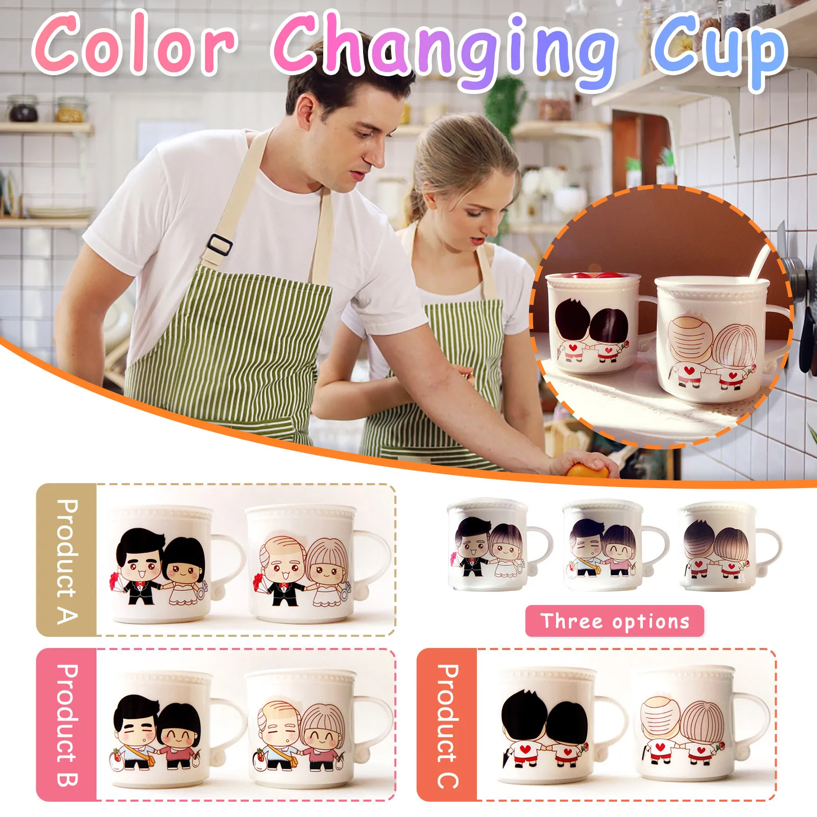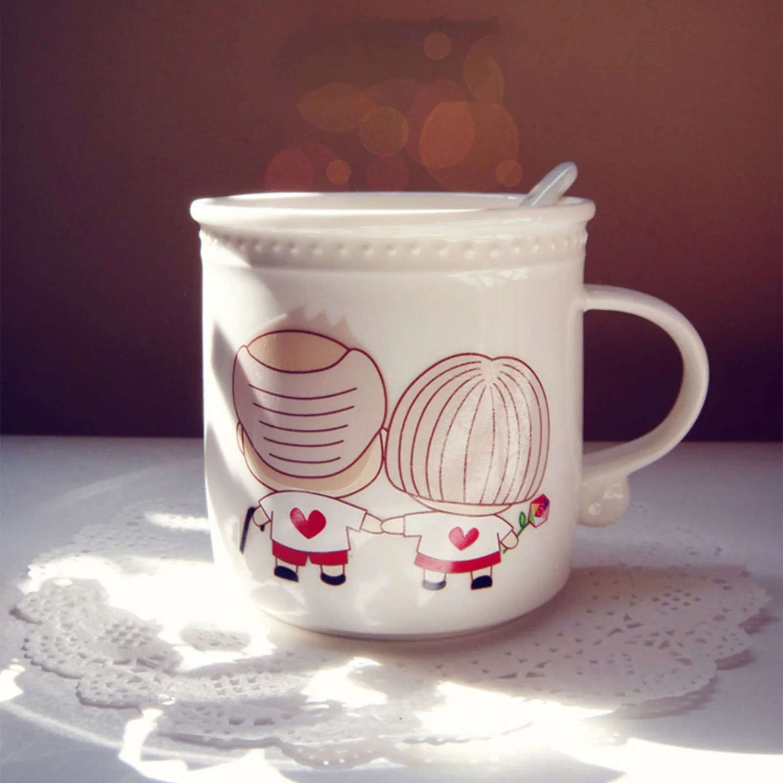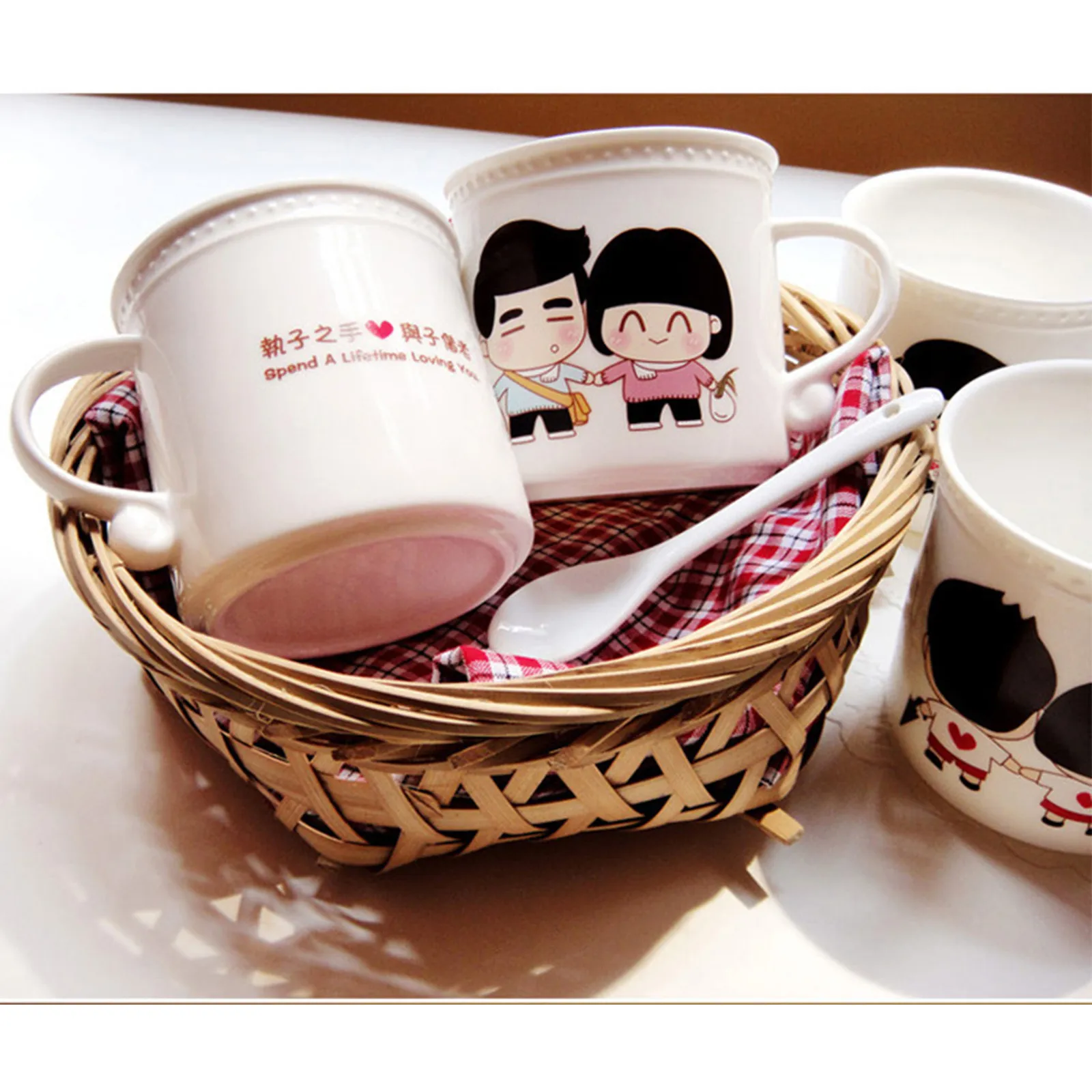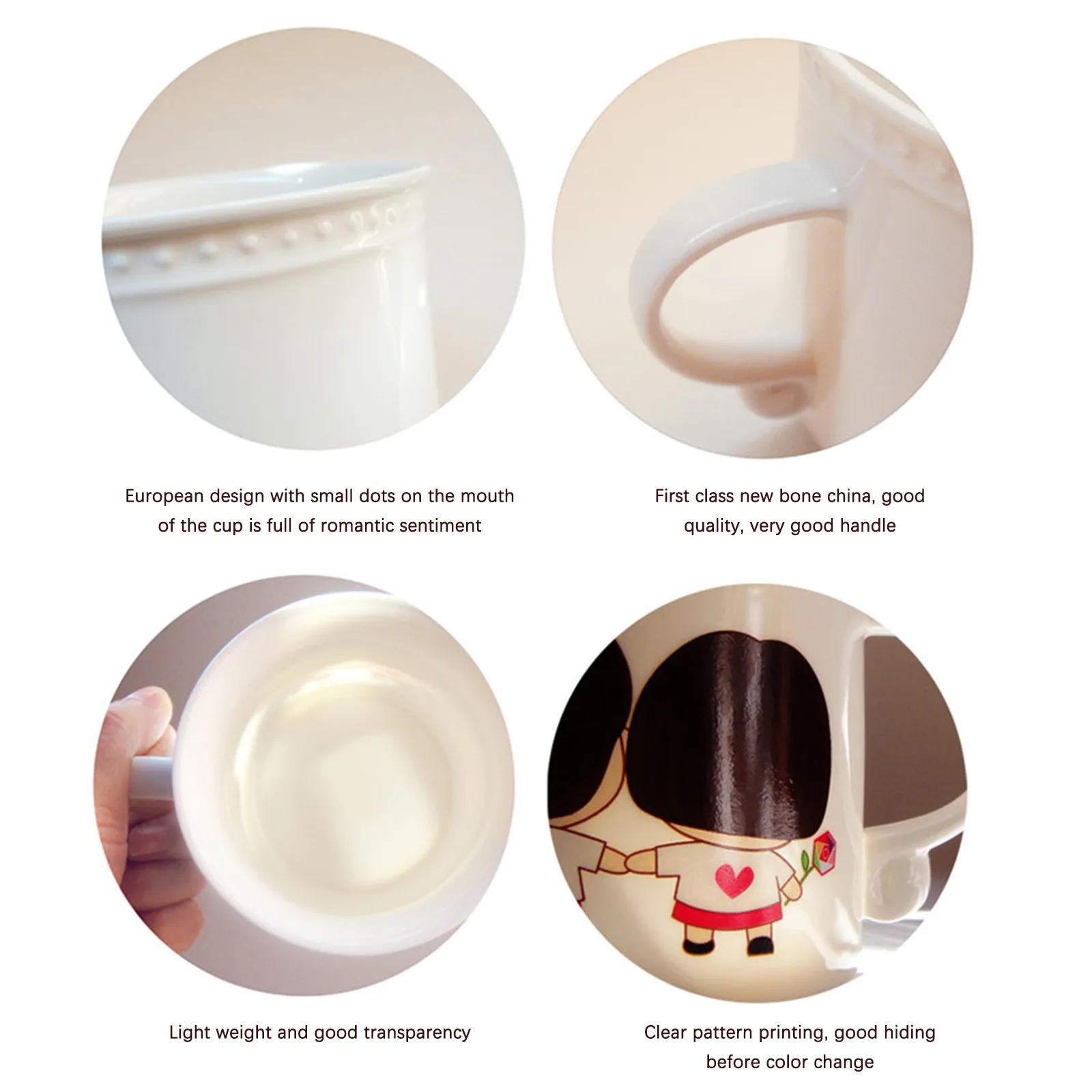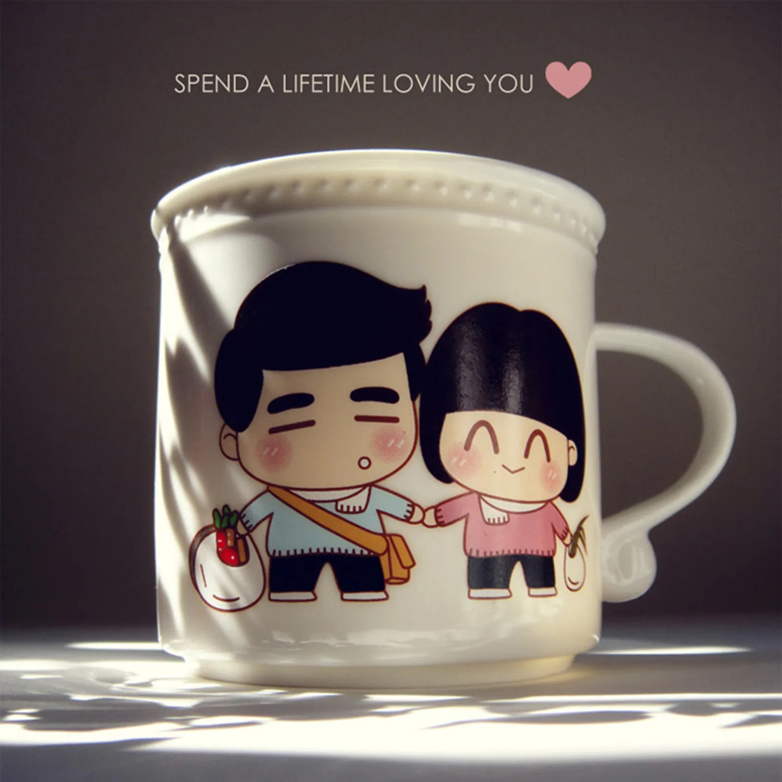 Это набор чашек с температурой и любовью. Медленно добавьте в чашку горячую воду, горячее молоко и горячий кофе. Пара влюбленных на чашке постепенно переходит от черных волос к белым, и в процессе инъекции горячей воды. Как будто любовь нагревается, как будто говорит нам состариться вместе.Время меняется, пространство меняется, все меняется, единственное постоянное, что я скучаю по вам...