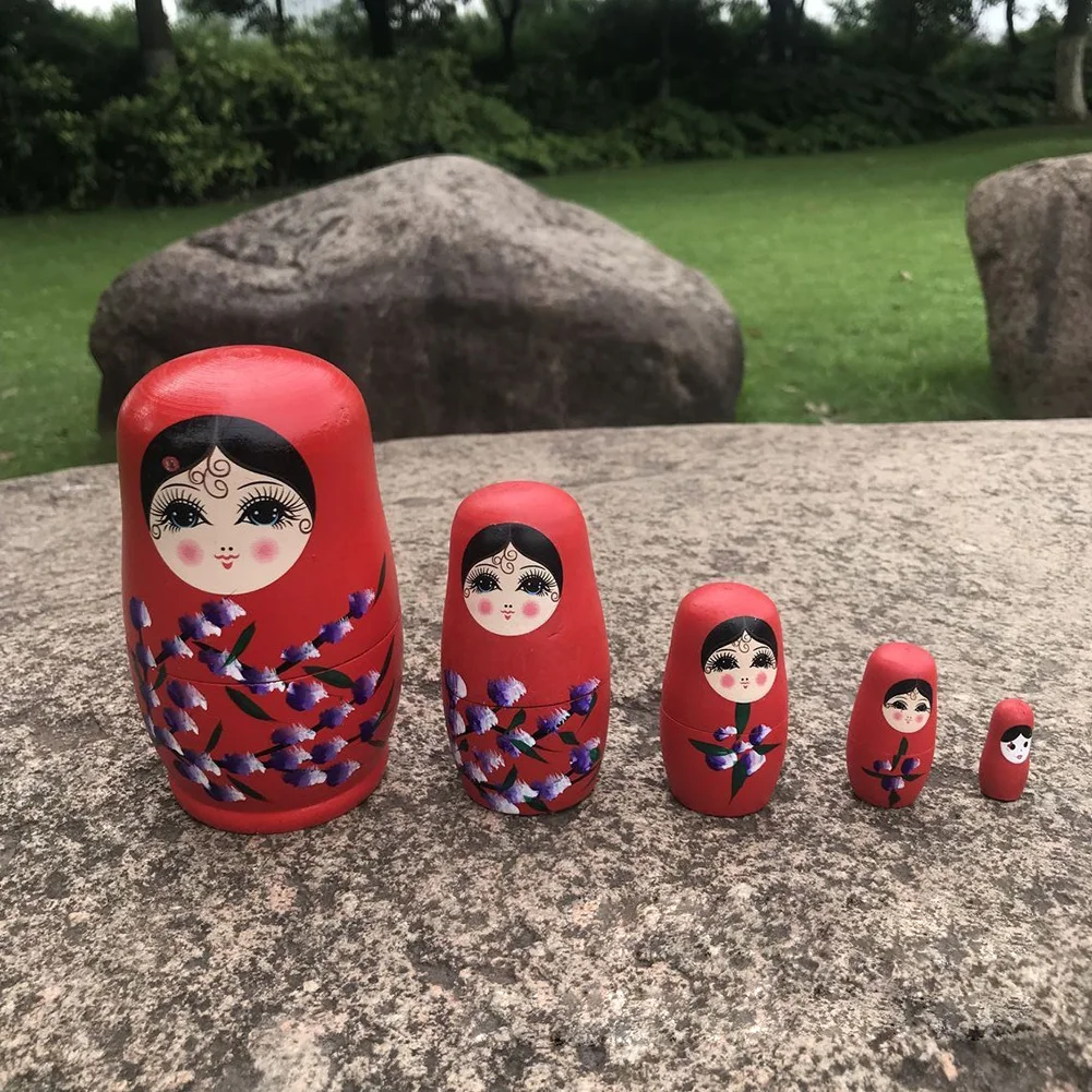 Прекрасный 5 слоев Цвет Краски Матрешка ручной Краски ed липы деревянные русский бабушка матрешки ручной ремесел орнамент подарок