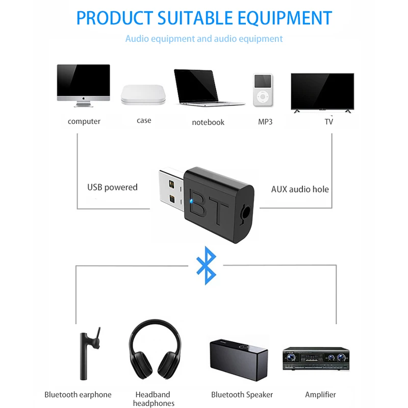 Этот адаптер приемника может использоваться в вашем компьютере, ноутбуке, домашней стереосистеме, гарнитуре, умном Телефон, mp3-плеер, CD потери и т. д.