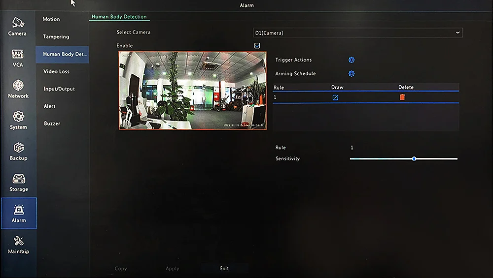 * Умная запись-сочетает в себе 24*7 запись и запись с обнаружением движения, никогда не упустите ни минуты и легко получите запись при обнаружении движения! Позволяет создавать определенные зоны обнаружения движения для мониторинга определенных зон.