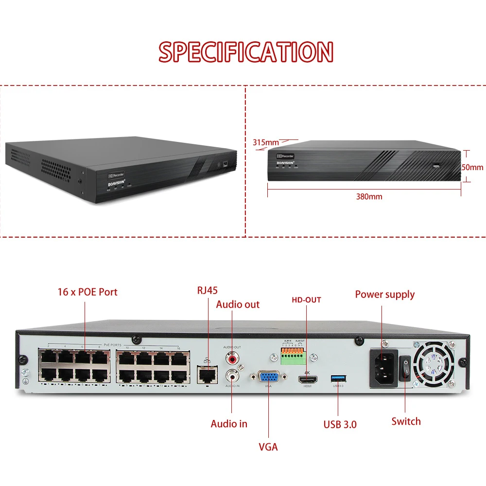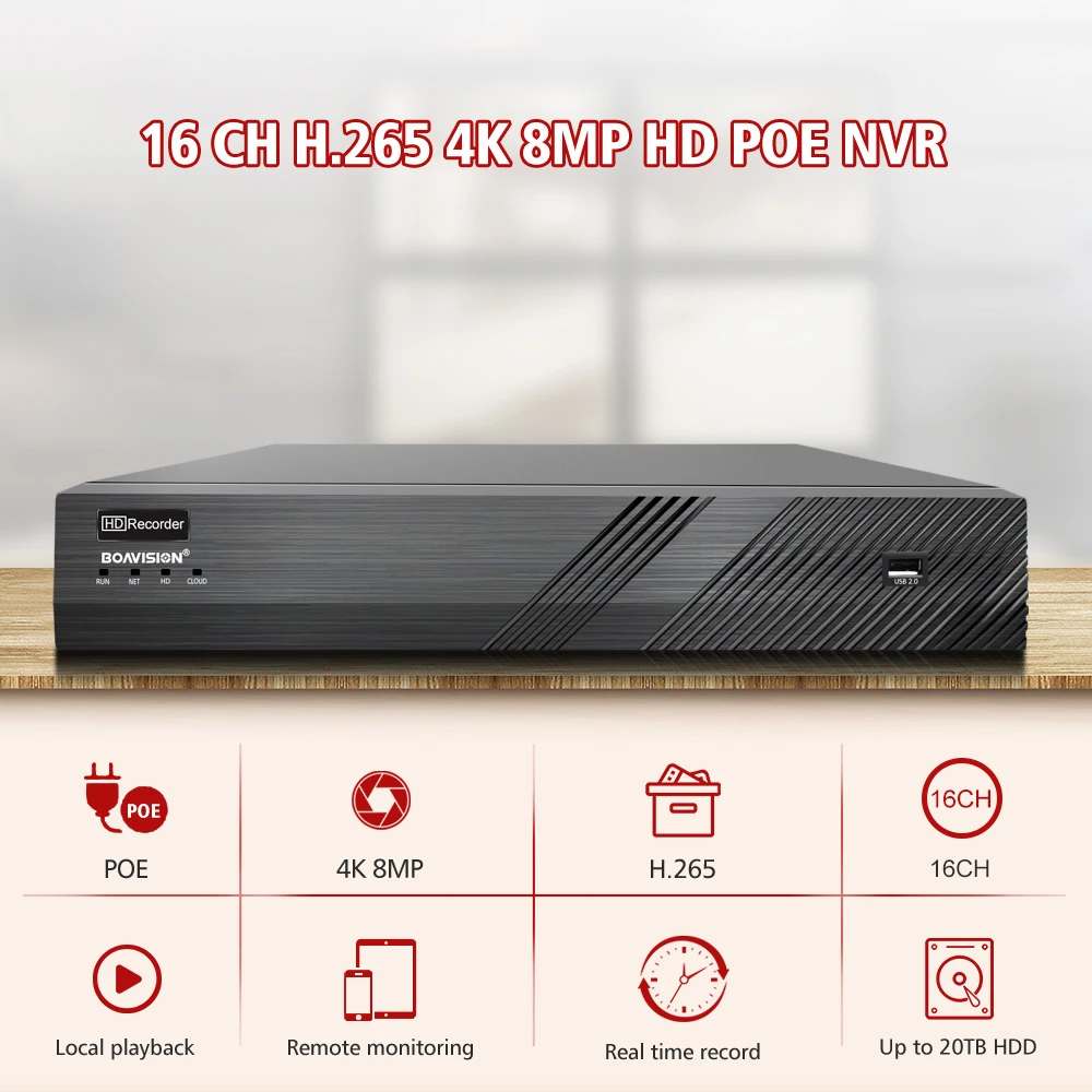 4K H.265 16CH 4MP 5MP POE CCTV NVR