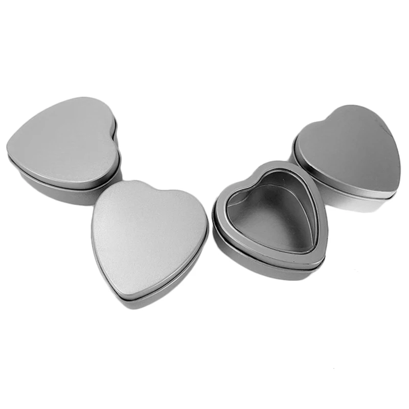 Пустые серебряные банки в форме сердца с крышками, достаточно для хранения мелких предметов для быстрого и удобного доступа.