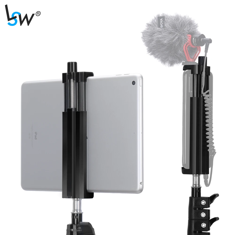 [Широкая совместимость 2 в 1]: Регулируемый адаптер для планшета и штатива для телефона 2-в-1 подходит как для большинства планшетов, так и для смартфонов. Длина Размер ручного измерения может продлить от 4,7 дюймов до 9 дюймов. Совместим с: iPad Air/Air 2, iPad Mini, iPhone 11/11 Pro/XS Max/XS/XR/X/8/8 plus/ Galaxy Note 9/ Note 8/ S10 и т. д. [Поворотный замок безопасности]: Разблокируйте кнопку, чтобы продлить длину стойки. Замочите кнопку, и ваш планшет будет надежно закреплен, предотвращая его появление и скольжение. И оба конца подставки для планшета прикреплены резиновыми подушками, защищая планшеты от царапин. [Несколько способов крепления]: Это крепление для планшета с резьбой 1/4 ", расположенное на основании, может помочь установить ваши планшеты или смартфоны на штатив, монопод, селфи-палку, настольный штатив-штатив или любые аксессуары, которые имеют стандартный винт 1/4". [Прочный и портативный мини-размер]: наш держатель для iPad изготовлен из высококачественного алюминиевого сплава, пластика и мягких нескользящих силикагелевых подушек, которые обеспечивают длительную прочность и защиту. Удерживайте любой iPad и смартфон, не беспокойтесь о скольжении, царапинах или повреждениях. Гуманизированный дизайн позволяет легко носить с собой везде. [Подходящие различные аксессуары]: в соответствии с вашими потребностями, вы можете выбрать подходящие аксессуары. Универсальная вращающаяся шариковая головка может гибко регулировать положение, позволяя делать фотографии, записывать видео и передавать потоковое видео под разными углами. Вы также можете выбрать пульт дистанционного управления Bluetooth для достижения дистанционной съемки.