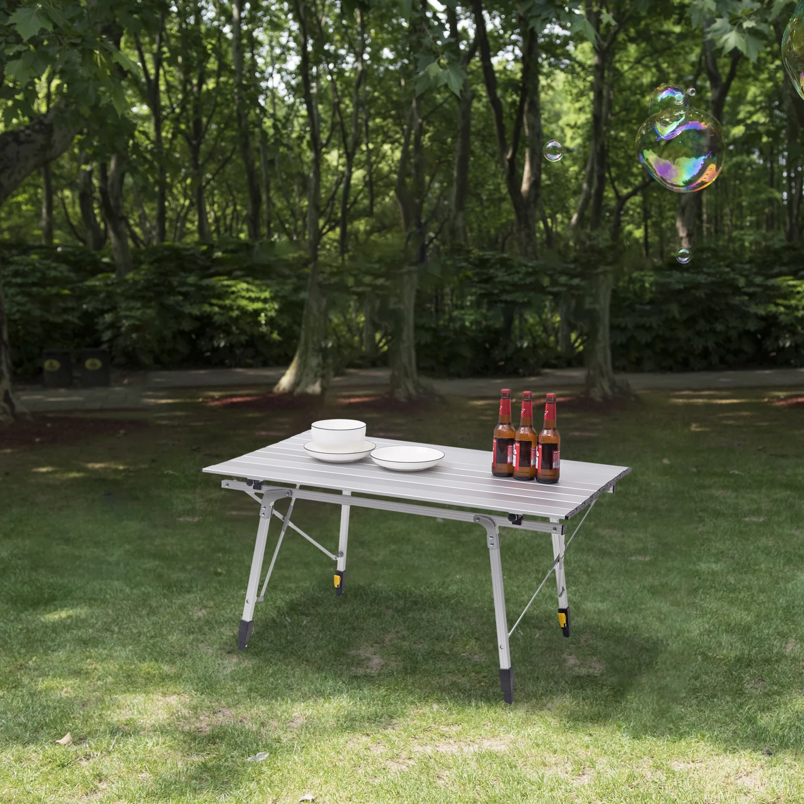 Высокое качество:❤Стол для пикника изготовлен из высококачественного алюминия, он атмосферостойкий и устойчивый к царапинам, Чрезвычайно устойчивый и прочный.