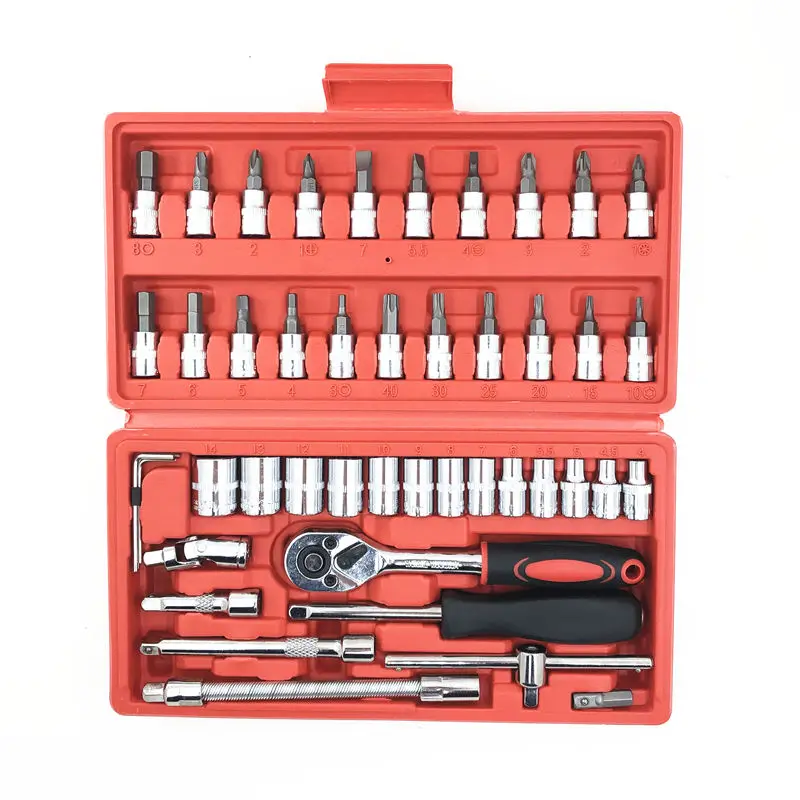 46 шт. 1/4 ''дюйма Автомобильный ремонтный набор инструментов для розетки гаечный ключ с храповым механизмом крутящий момент авто ручной инструмент шкаф DIY автомобиль ремонт Toos коробка
