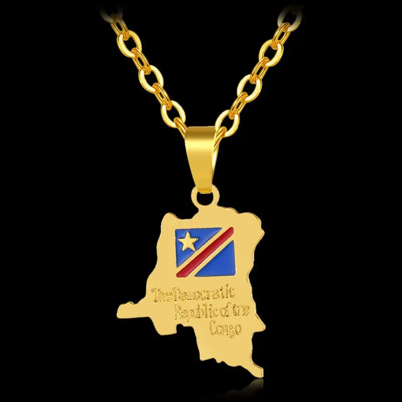 Республика Конго карта кулон ожерелья изысканные DRC Шарм Этническая страна карта чокер туристические сувениры подарок