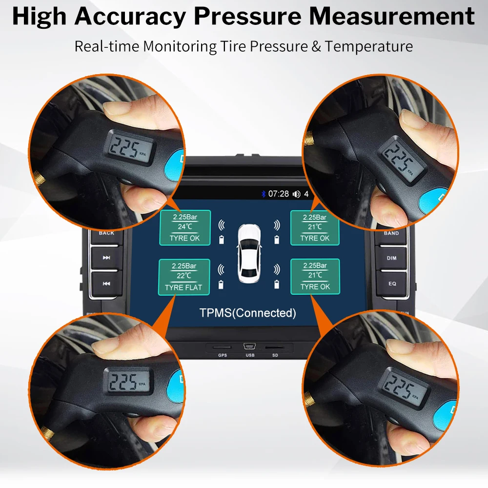 USB Android TPMSСистема контроля давления в шинахОсновные характеристикиПреимущество-Поддержка запасных шин-Поддержка переключения Летних/зимних шин с 2 наборами датчиков-Широкий диапазон настроек давления сигнализации, подходит для шин 0 ~ 8 барTPMS для Android автомобильный DVD/Android навигатор-TPMS приемник может быть подключен к автомобильному DVD-плееру Android через USB-порт-Отображение данных о давлении и температуре в шинах на экране автомобильного DVD-плеера Android-Звуковая сигнализация через автомобильные динамики и экранная сигнализация при возникновении неисправности-Предотвращает Разрыв шины, продлевает срок службы шины и экономит топливо6. Защита для безопасного вождения① Сигнализация высокого давления② Сигнал низкого давления③ Сигнализация утечки воздуха④ Сигнализация высокой температуры⑤ Сигнализация низкого заряда батареи⑥ Датчики отключения сигнализацииСвободно меняйте положение шин-Особенно когда вы меняете запасную шину (поддержка MU9F-5/MU7J-5)-Легко работать в нашем приложении TPMSПоддержка 11 языков-Английский, русский, украинский, испанский, немецкий, итальянский, португальский, японский, вьетнамский, упрощенный/традиционный китайский.Внимание: (до оплаты)