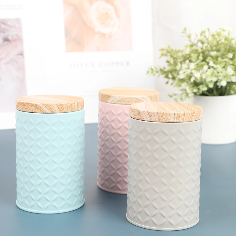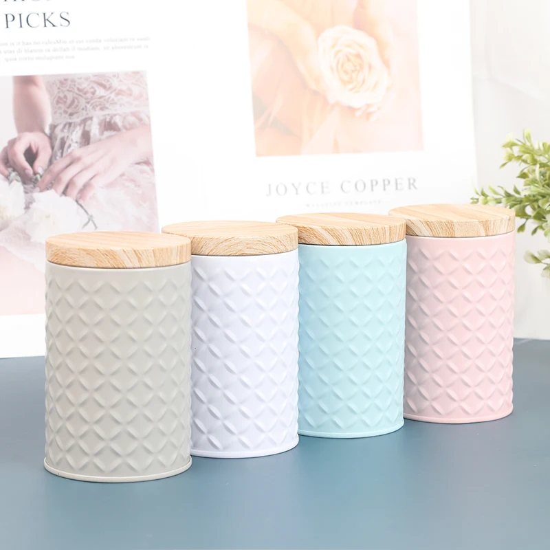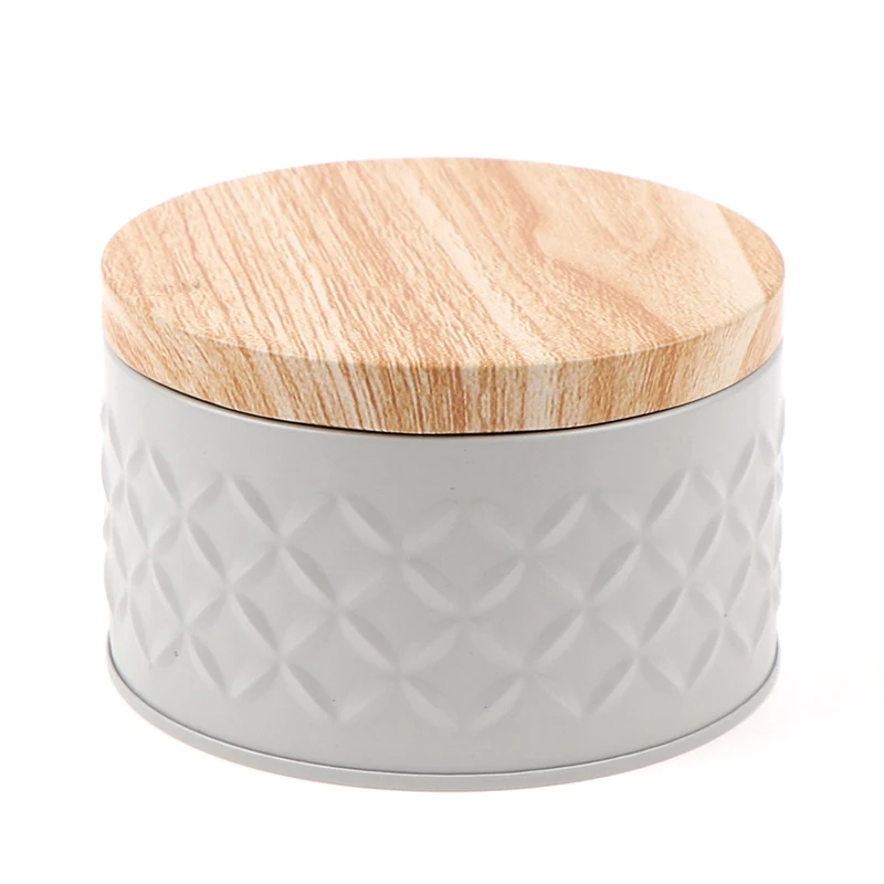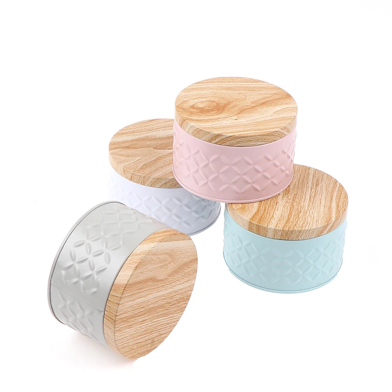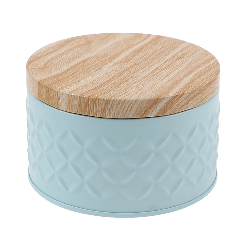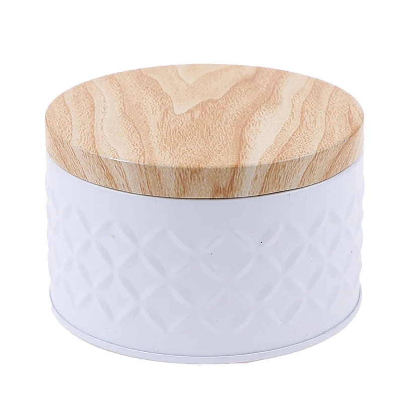 Wood Grain Tin Box Metal Storage Box Home Organizer Coffee Tea Cans Christmas