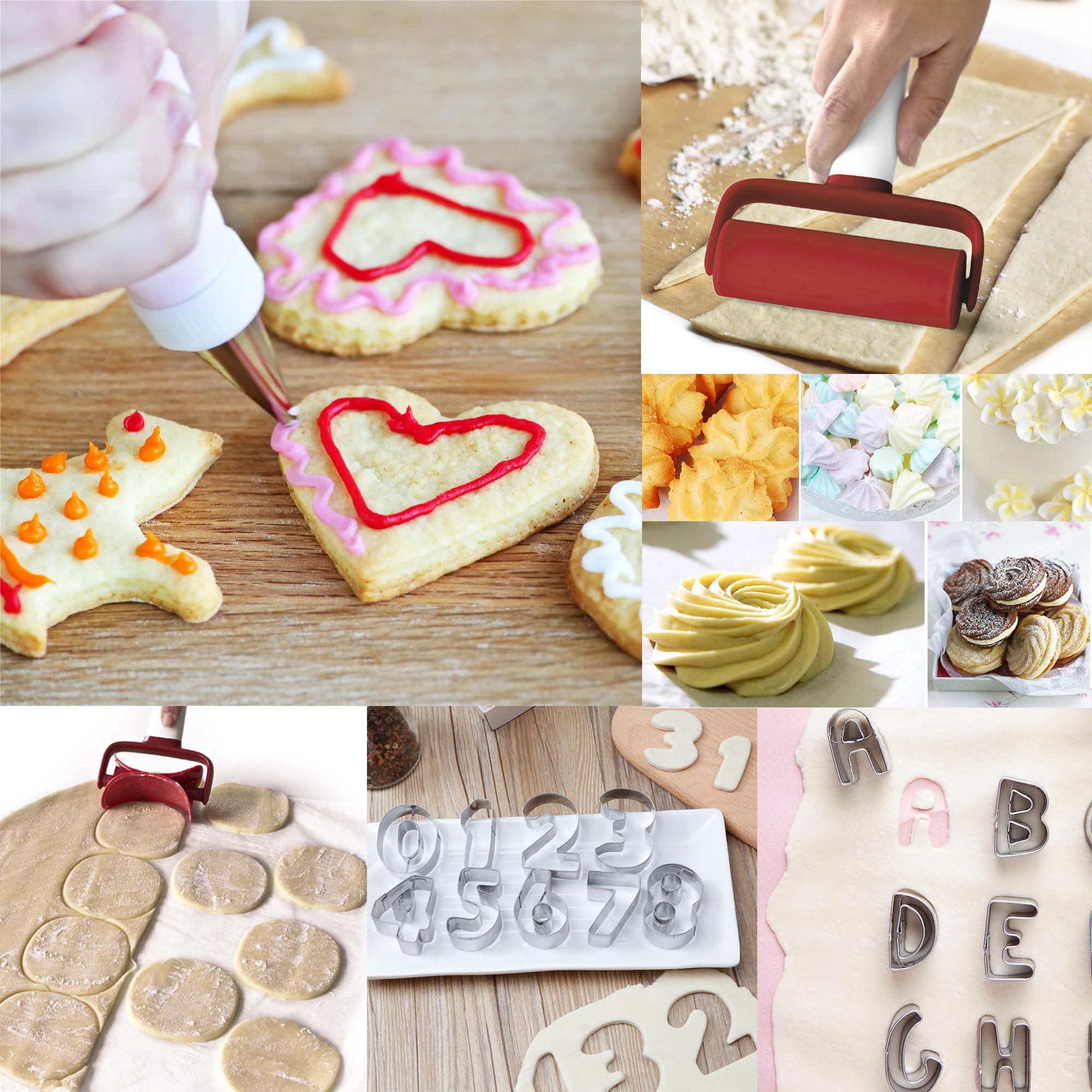♥В дополнение к 47 штук резак для печенья + 1 Скалка + 1 роторный резак + 8 насадок + 1 сопло конвертер + 100 насадок мешков, эти очень полезные инструменты. Они могут помочь вам испечь и вырезать лучше ♥Эти формы для печенья изготовлены из высококачественной пищевой нержавеющей стали, безопасны, долговечны и легко чистятся (совместимы с посудомоечной машиной) ♥Острые формы и внутренние вырезы. Если вы покрываете формы маслом перед использованием, тесто легче выделяет из резки и формы хорошо держится во время выпечки. ♥Взаимодействие родителей и детей, наслаждайтесь приготовлением пищи или выпечки с детьми. Сочетание алфавита и цифр может дать детям лучшее интеллектуальное развитие и наслаждаться ими. ♥Очень универсальный, вы также можете использовать его для: в том числе резки печенья, овощей, выпечки, теста, помадки, маффины и хлеба. Используйте его, чтобы обеспечить различные виды развлечений для вечеринок, дней рождения, праздников и юбилеев. Посылка: 3 формы в форме цветка. 3 формы круглой формы. 3 формы в форме сердца. 3 формы в форме звезды. 1 Скалка 1 роторный резак 8 насадок 1 преобразователь сопла 100 мешков для насадок. Примечание: -Стирать с моющим средством перед первым использованием. -Не используйте щетку для скраба или порошок для полировки. -Не используйте поверх прямого пламени, в тостерных печах или в микроволновой печи. -Ребенок должен быть под присмотром стража при использовании продукта. -Немедленно прекратите использование, если продукт деформируется или поврежден. -Не используйте этот продукт для других целей, кроме его первоначально предназначенной цели. -Это не игрушка. Детям до 6 лет не разрешается пользоваться. -Хранить в недоступном для младенцев месте. -Держите подальше от огня и других источников тепла.