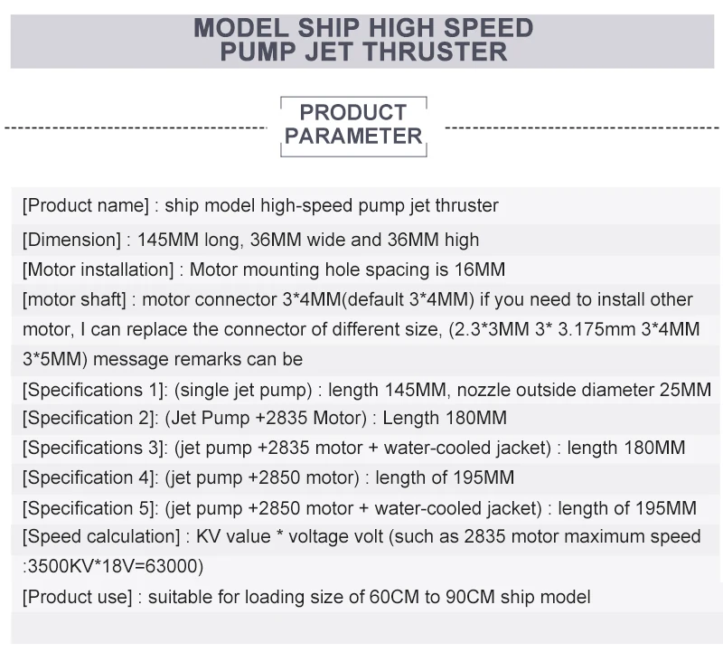 [Спецификация 2]: (струйный насос + двигатель 2835): длина 180 мм