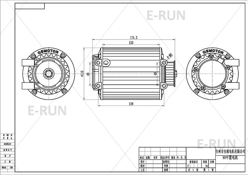 QS 90 1KW V1 PMSM Средний привод двигателя 55KMH для электрического скутера