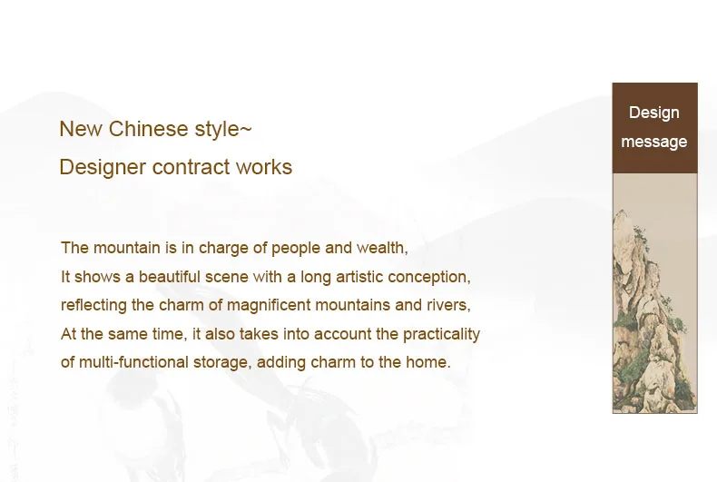 Демонстрирует красивую сцену с длительным художественным замыслом, который отражает очарование великолепных гор и рек, и в то же время, он также учитывает практичность многофункциональных свойств, добавляет шарма в дом.
