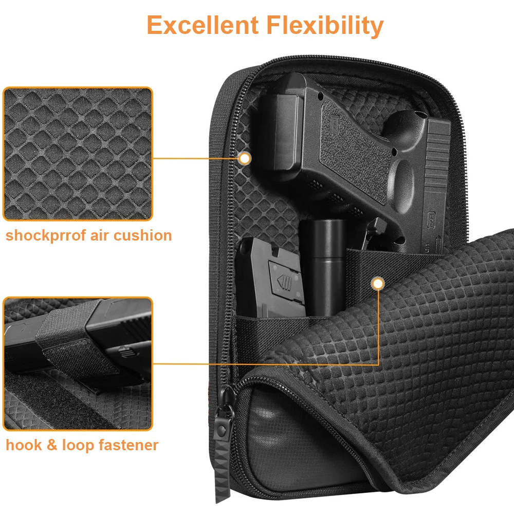 2. Совместимость-Gun чехол Размеры: 9,4 "× 7" × 1,3 "; Практичный размер подходит для большинства типов машинок для пистолетов с а (макс.) общая длина 7 дюймов на рынке