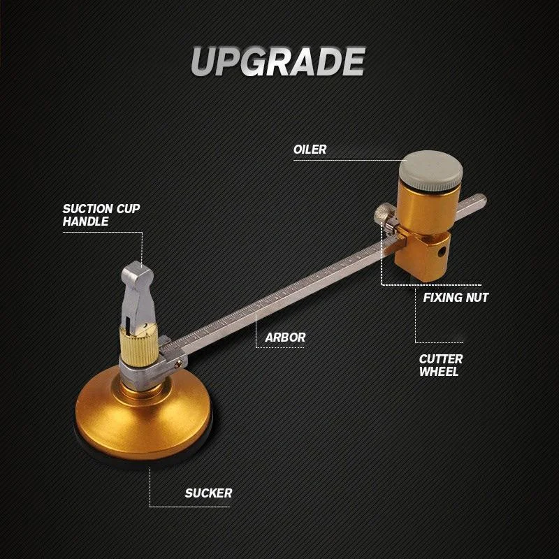 Есть мощная Присоска на стекле резак, он может стабильно держать стекло и обеспечить центр круга без отклонения, в то время как режущая головка нарисовывает круг.