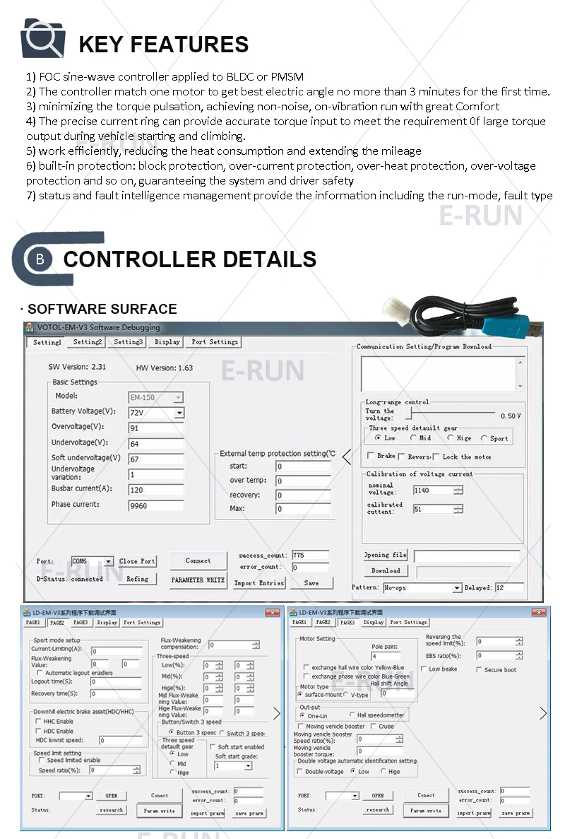 1 шт. x контроллер синусоидальной волны Votol EM200S с CAN автобусной версией