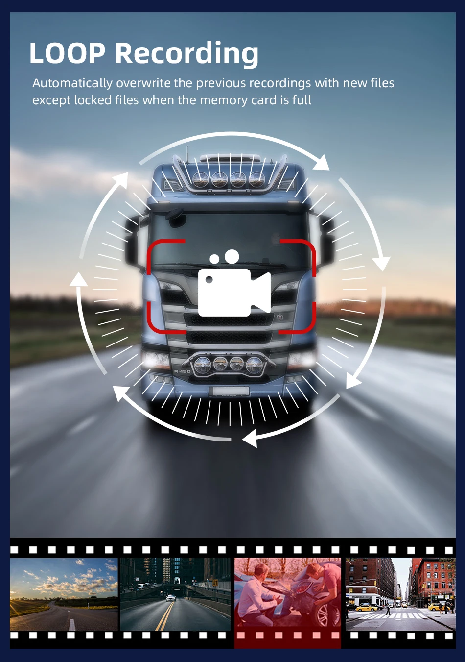 Циклическая записьАвтоматически перезаписывает предыдущие записи с новыми файлами, за исключением заблокированных файлов, когда карта памяти заполнена.