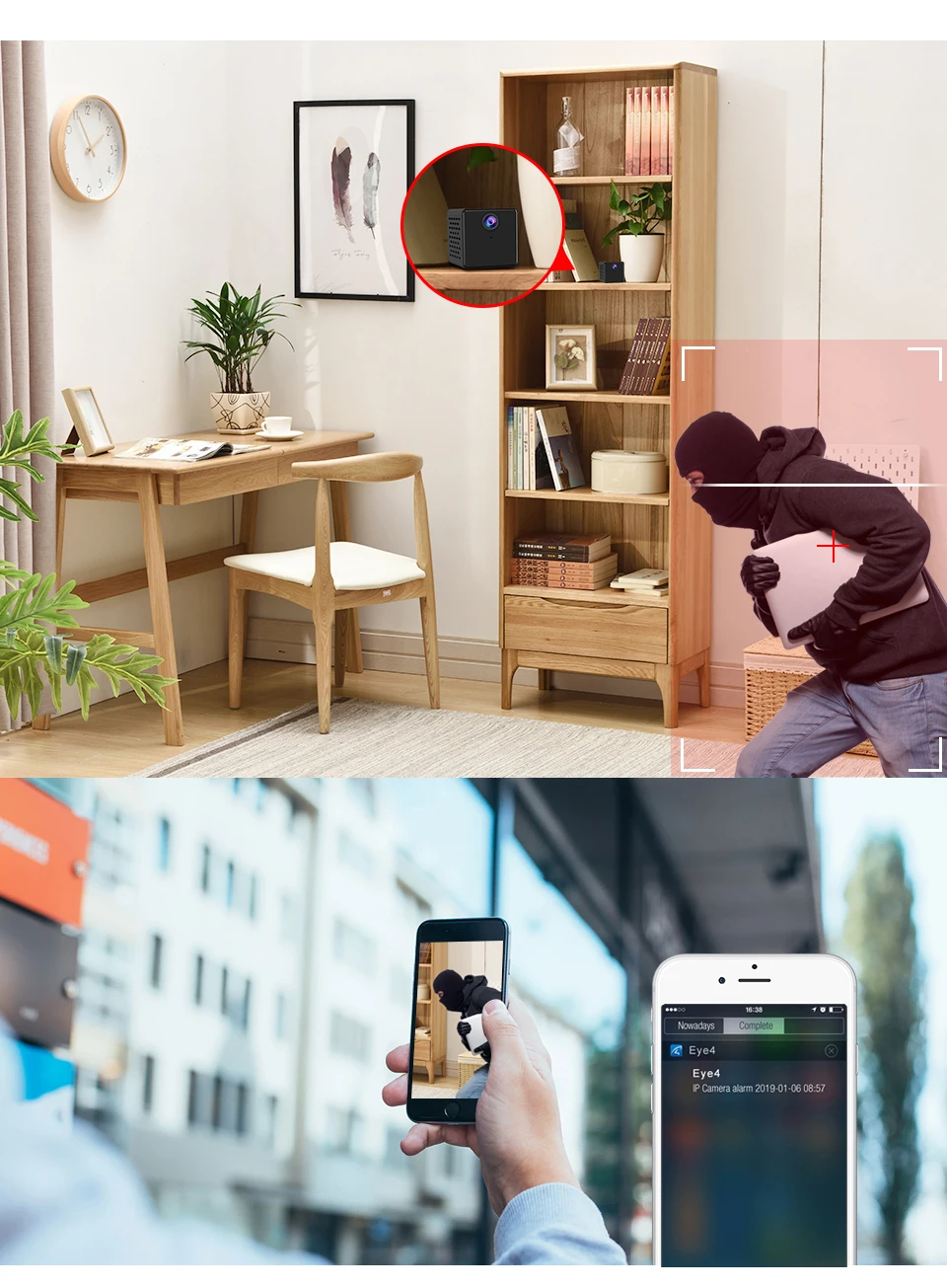 6 футов ПИР обнаружения, более точное обнаружение, эффективно уменьшить недействительный сигнал тревоги, который может эффективно фильтровать недействительный сигнал тревоги, вызванный занавес качели, светильник изменения, нечеловеческого прохождения, взлома и т. Д. При обнаружении движения человека камера сразу же предупредит вас на ваш мобильный телефон. √ Электронная почта √ приложение push message √ FTP