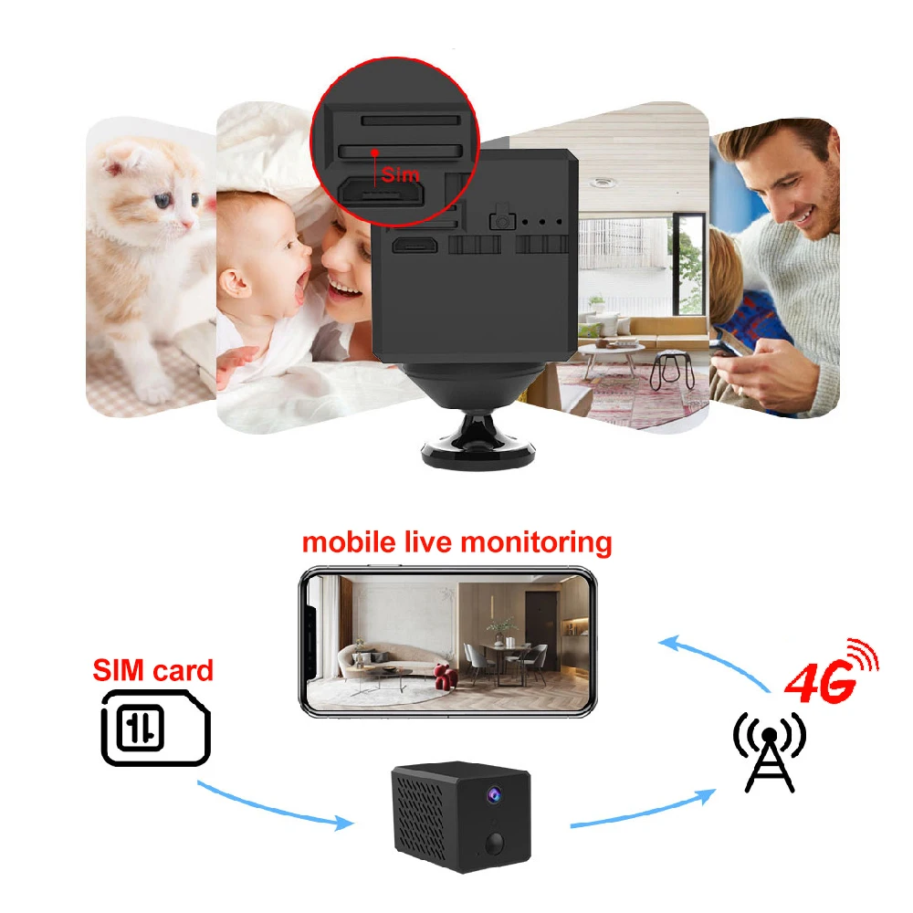 Включите режим 4G, вставьте карту Micro SIM, удаленно Подключите камеру к мобильный телефон, чтобы дистанционно контролировать мобильный телефон.
