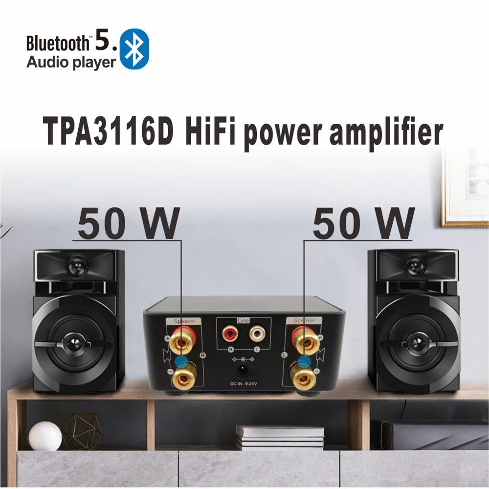 С помощью TPA3116 чип, максимальная мощность может достигать 50 Вт, украшенное мозаикой из драгоценных камней, 12V 5A, фактическая выходная мощность достигает 30 Вт * 2, 4 Ом