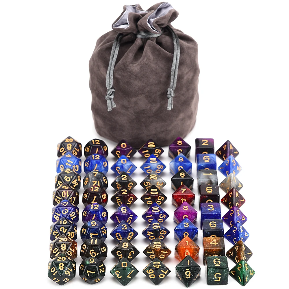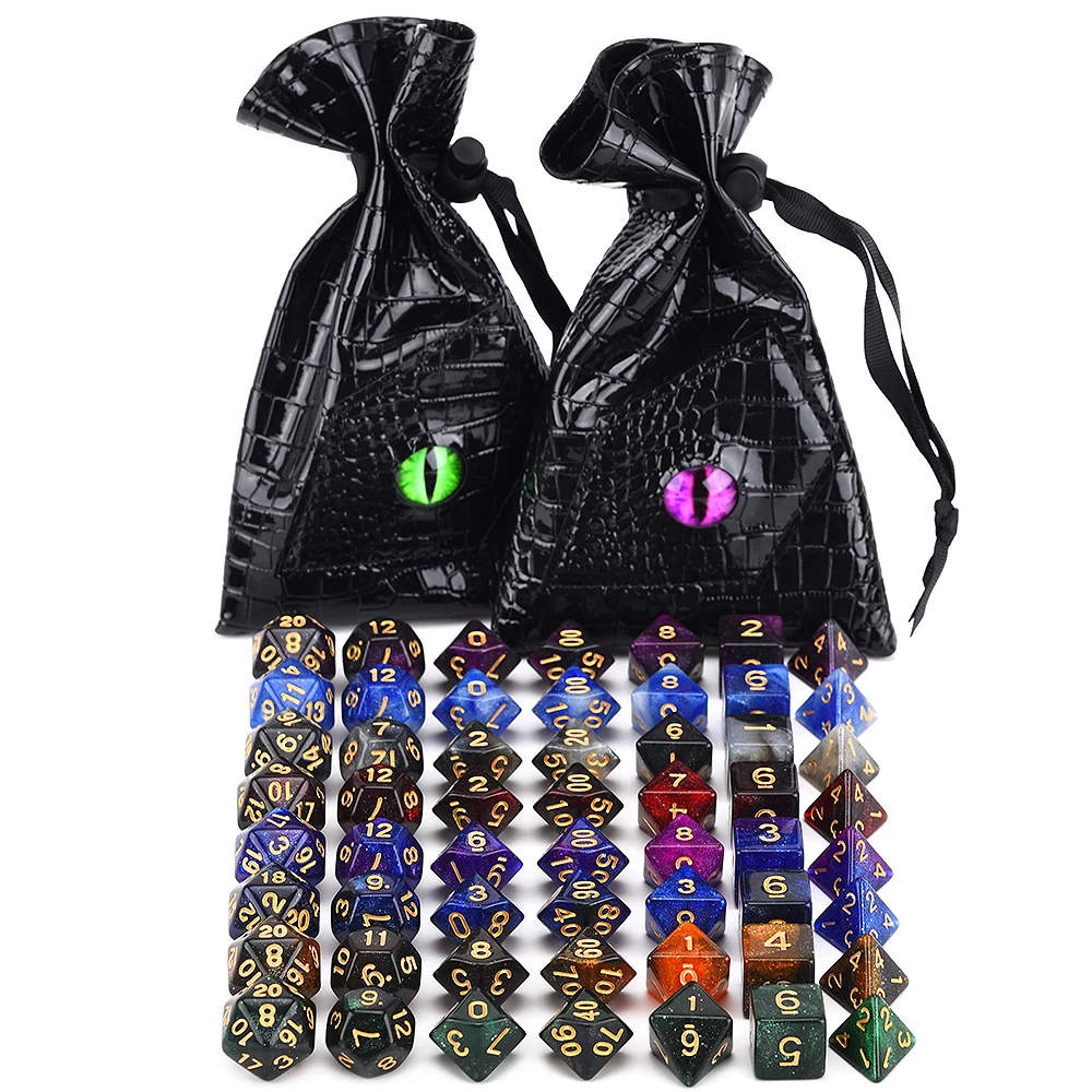 Набор из 8 галактических многогранных акриловых игральных костей для настольных игр DND RPG MTG Math Teaching (бархатная сумка, сумка для Глаз Дракона на выбор)