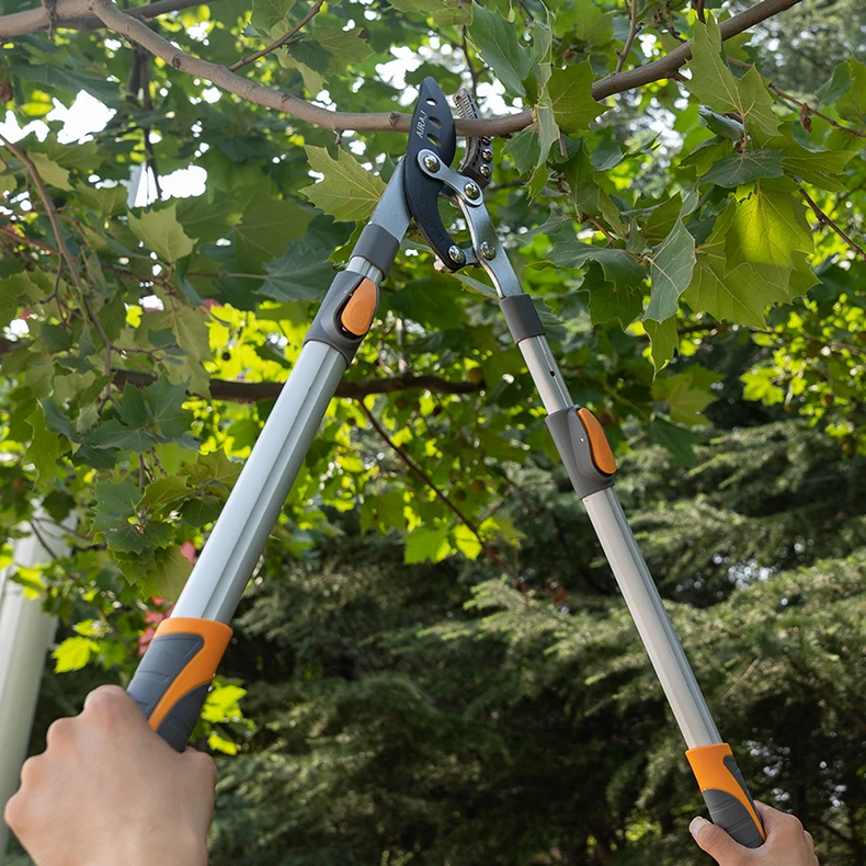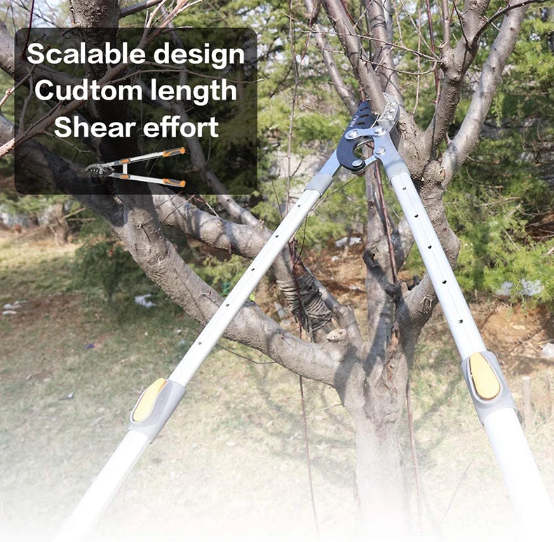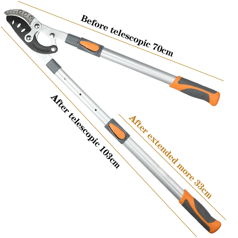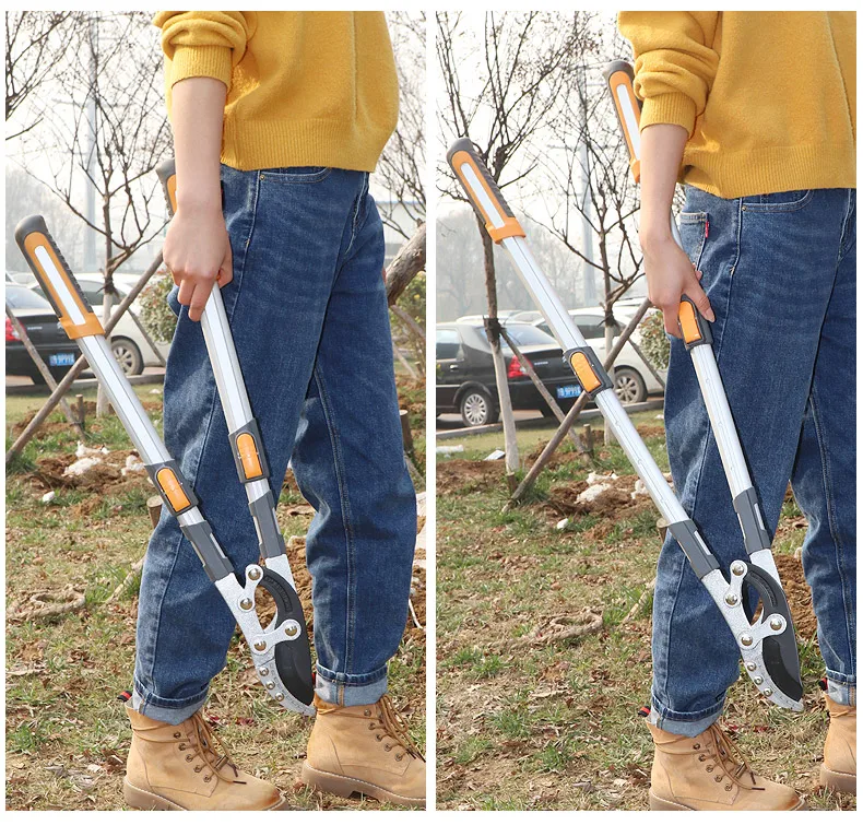 3. Регулируемые кнопки длины и выдвижная конструкция позволяют обрезать более высокие ветви, чтобы уменьшить усталость рук в течение длительного времени обрезки веток.