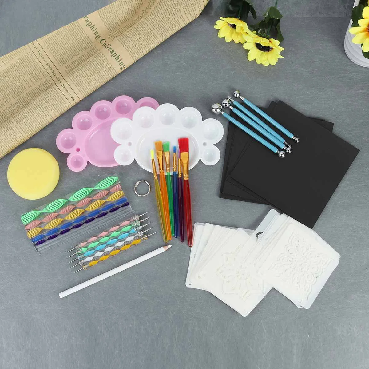 Акриловые пластиковые инструменты мандалы легко моются влажной тканью или бумажным полотенцем.