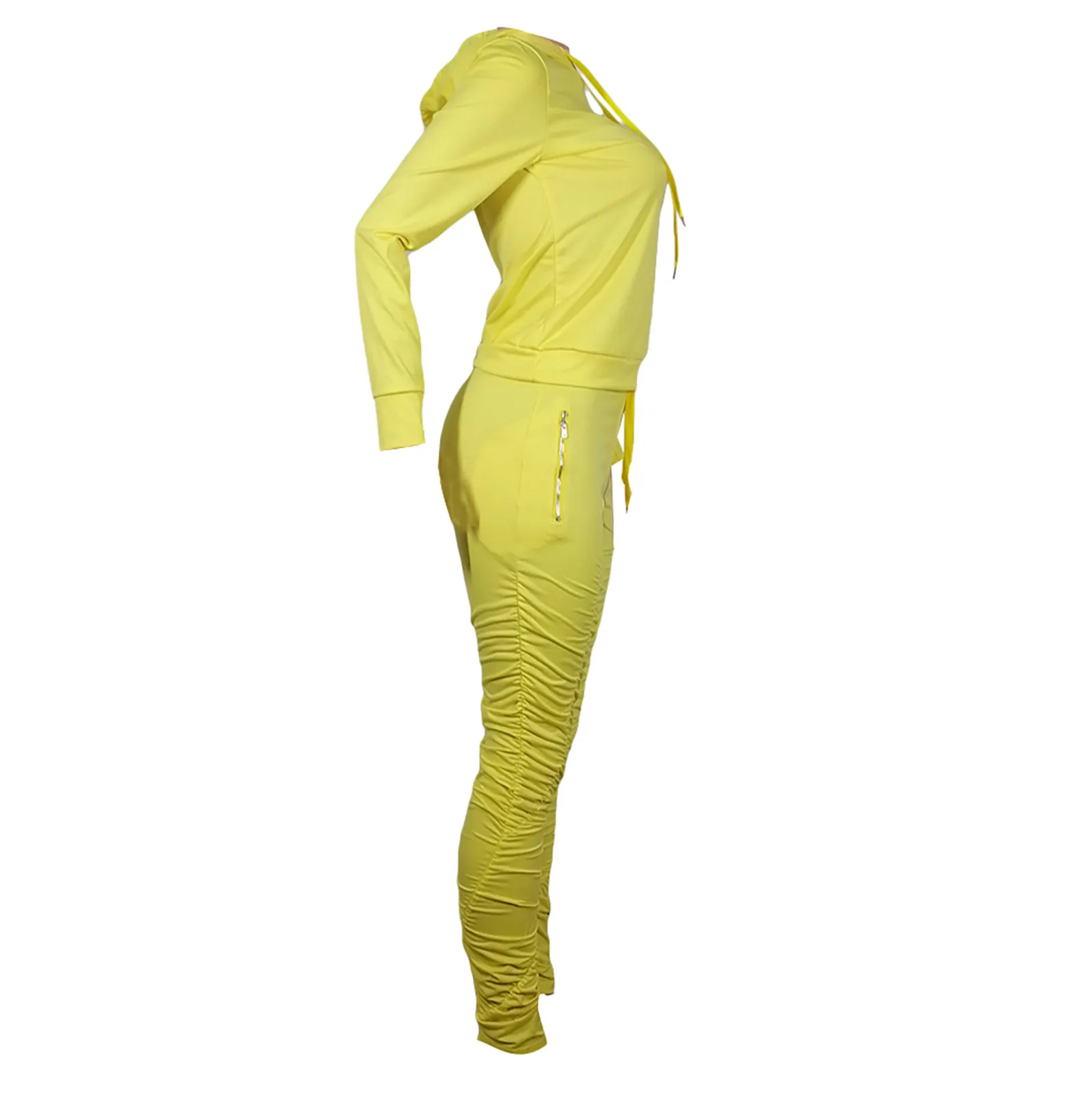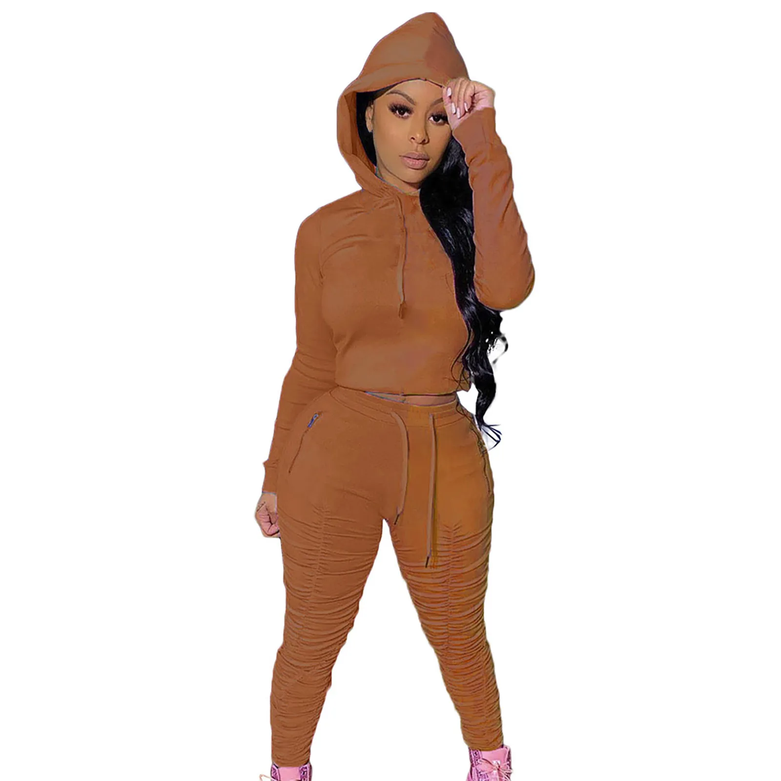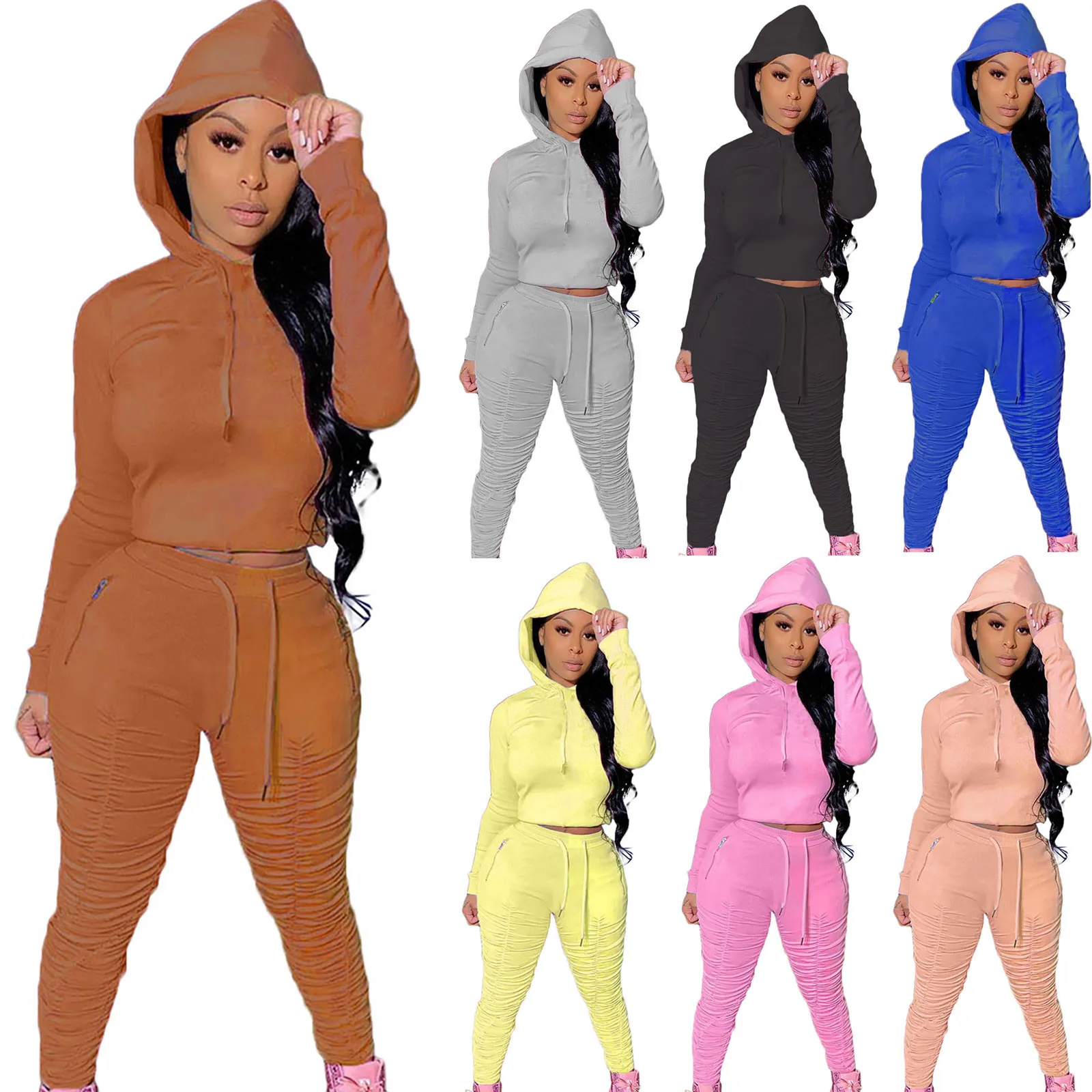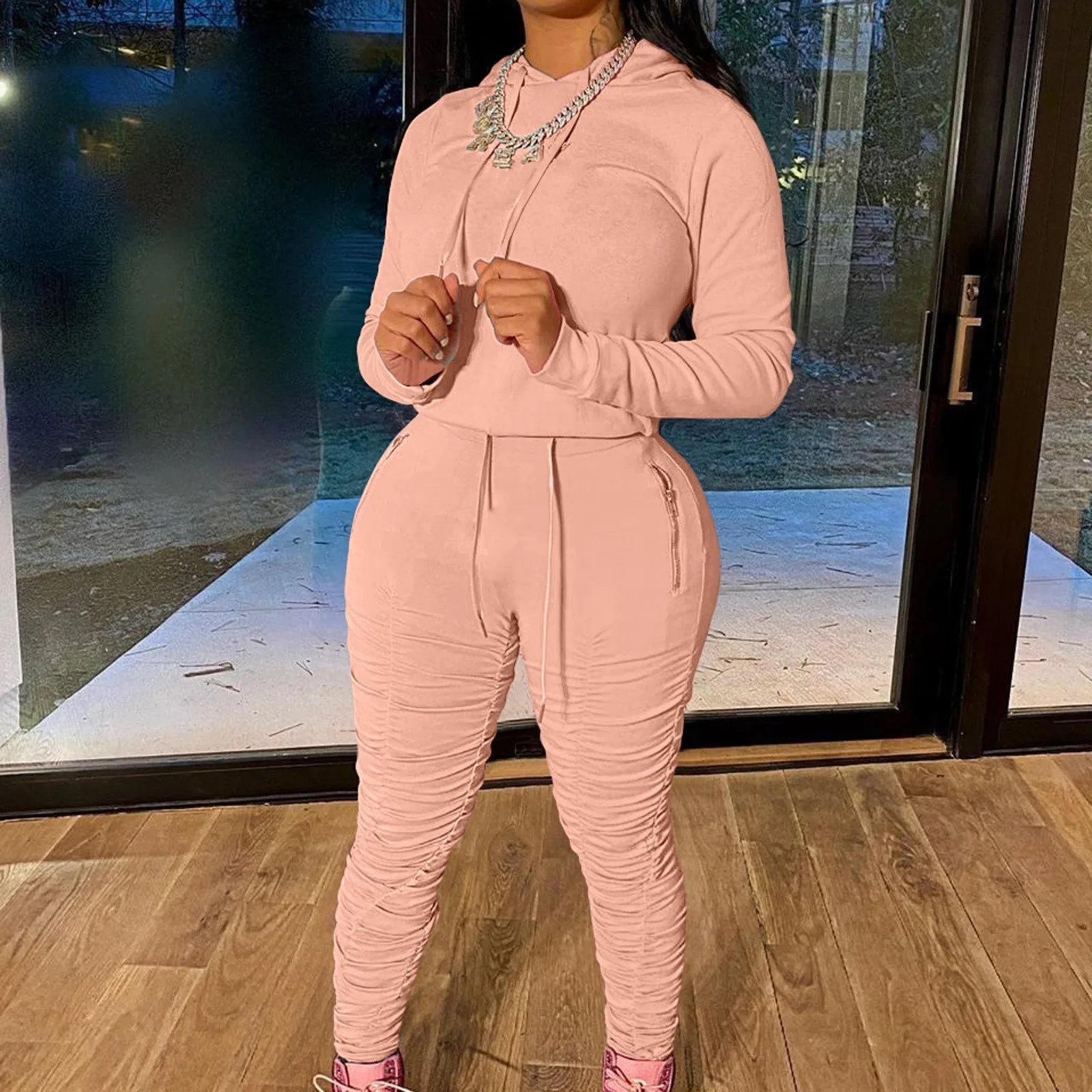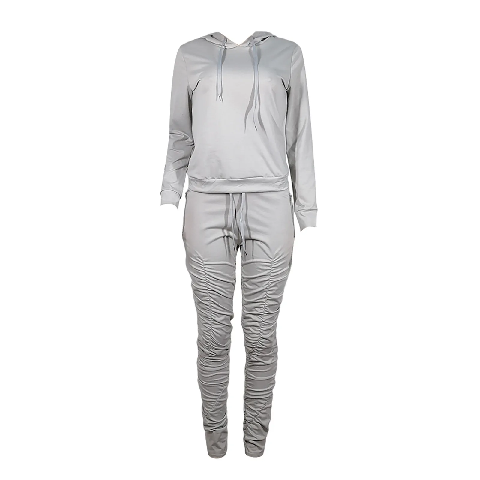 Women's Fashion Long Sleeve Hooded Pullover Pleated Pants Casual Suit