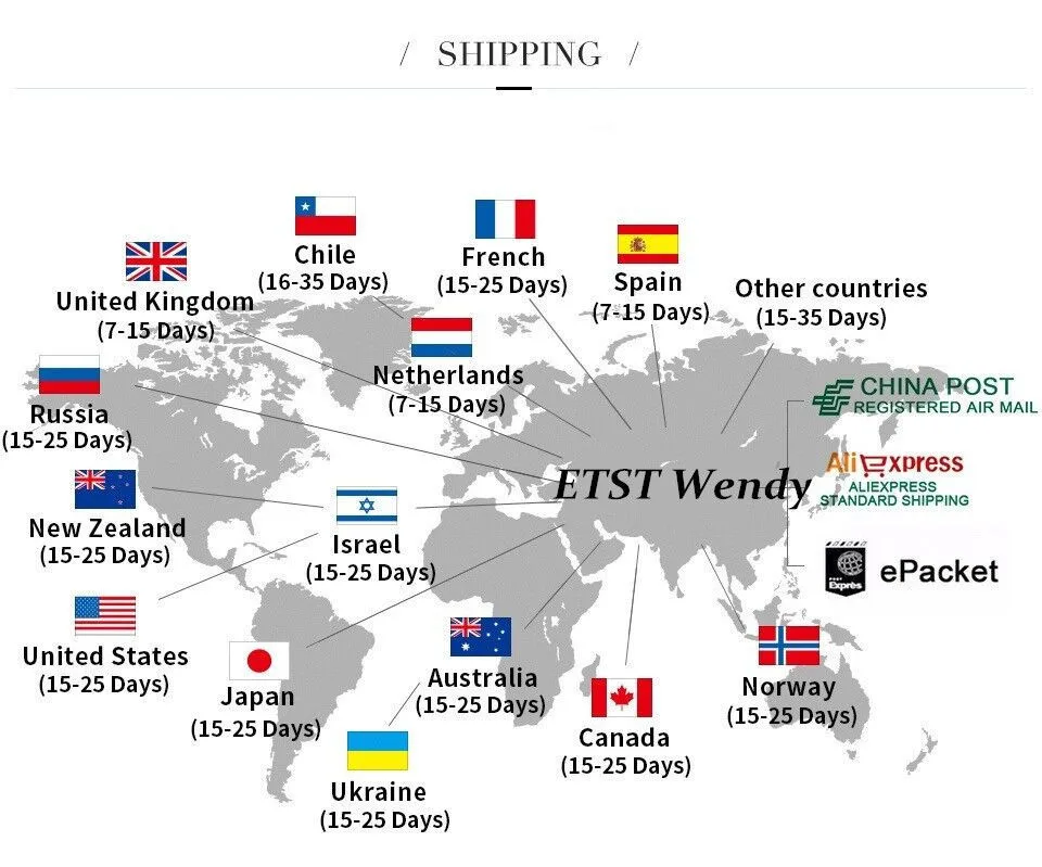 Каждую неделю Новое прибытие загрузить Наслаждайтесь временем покупок. - - - Оплата На Aliexpress.com доступно множество способов оплаты, таких как Visa, кредитные карты, банковские переводы в реальном времени, офлайн-платежи (банковские переводы и Western Union). Вы можете выбрать любой самый удобный для вас способ доставки. Для защиты ваших интересов ваш платеж будет временно удерживаться Aliexpress и не будет передан нам до тех пор, пока вы не получите свой заказ и не будете удовлетворены им. Условия доставки Мы доставим товары по адресу доставки, который вы оставили в Aliexpress. Для того, чтобы вы могли получить ваш заказ как правило, пожалуйста, заполните ваш адрес доставки тщательно. Политика Возврата Мы гарантируем 100% удовлетворение. Если вы не удовлетворены товарами, которые вы получили от нас, и товар отличается от описания. Пожалуйста, дайте мне знать. Предлагается полный возврат, обмен или замена. Отзывы и свяжитесь с нами Если вы удовлетворены нашими товарами и обслуживанием, пожалуйста, сделайте мне предложение, чтобы оставить положительные отзывы. Ваши хорошие отзывы очень ценятся. Я рад ответить на любой вопрос, который у вас может быть, поэтому, пожалуйста, не стесняйтесь связаться со мной. Я сделаю все возможное, чтобы ответить вам не позднее 24 часов, за исключением выходных.