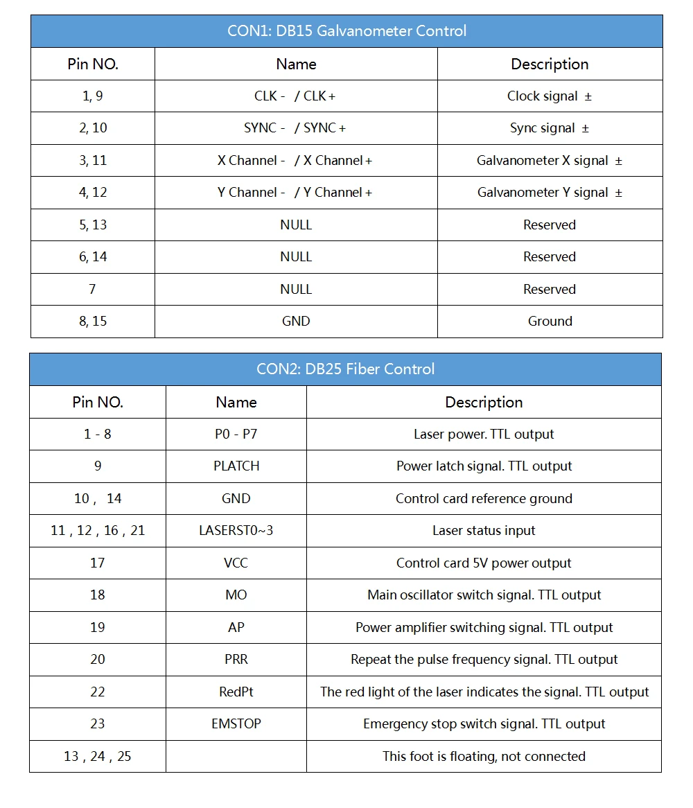 1. Используйте разъем DB25 для вывода сигнала управления лазером и прямого подключения к импульсному волоконному лазу через 25-контактный кабель.