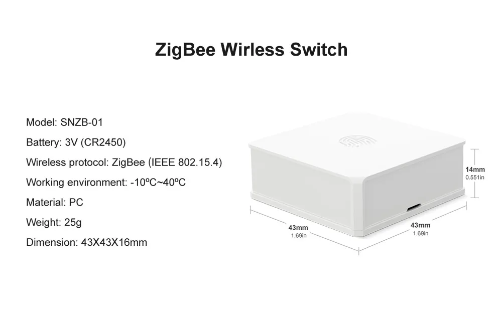 Беспроводной переключатель SONOFF SNZB-01 Zigbee-это мини-и изысканный беспроводной смарт-переключатель ZigBee, отвечающий на мост SONOFF ZigBee, который позволяет достичь цели связи между устройствами ZigBee (умный переключатель SONOFF BASICZBR3 DIY и S31 умная вилка Lite zb) И Wi-Fi устройств. Кнопочный переключатель настраивается с тремя вариантами управления-одним, двойным нажатием и длительным нажатием, так что вы можете, довольно легко, программы и действия так просто, как вам нужно. Сопряжение одним нажатием. Намного проще подключить его к нескольким подключенным устройствам, которыми вы хотите управлять, просто нажмите на приложение, чтобы соединить все устройства. Блеск линий кнопок в его гибкой подвижности, вы можете стратегически разместить его или перемещать его вокруг вашего дома, где это будет наиболее полезно, затем создайте умную сцену, чтобы она работала для вас на основе различных действий кнопок, которые вы настроили. Двустороннее управление доступно даже для включения/выключения светильник в двух местах. Кнопка работает от батареи, что ваш мобильный телефон получит уведомление о низком уровне заряда батареи, когда оставшийся уровень заряда батареи составляет менее 10%, возможно, пришло время изменить батарею.
