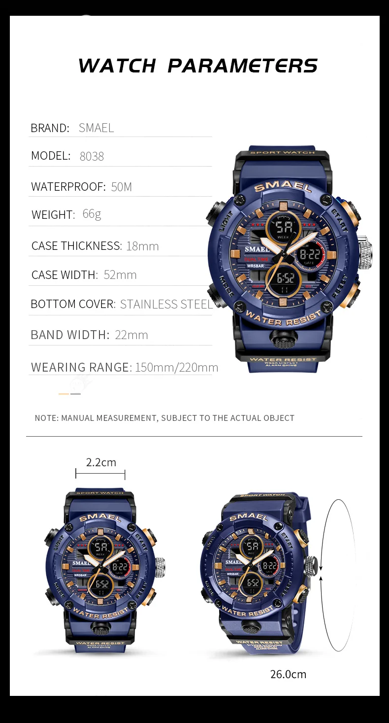 Спортивные часы мужские военные часы цифровой светодиодный светильник 50 м водонепроницаемые наручные часы секундомер часы для мужчин 8038 кварцевые часы спортивные