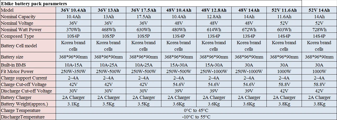 В-третьих, если ваш старый аккумулятор составляет 10,4 Ач, а размер baterybox одинаковый или больший и пригодный для работы, вы можете выбрать более высокую емкость, например, 12Ач 14ач или более, чтобы достичь большего расстояния