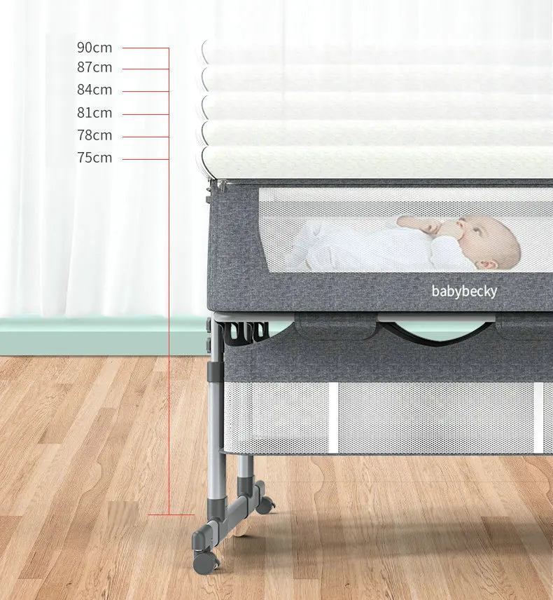 6 уровней регулировки высоты, может быть соединена большая кровать, диван, ребенок мама нулевое расстояние.